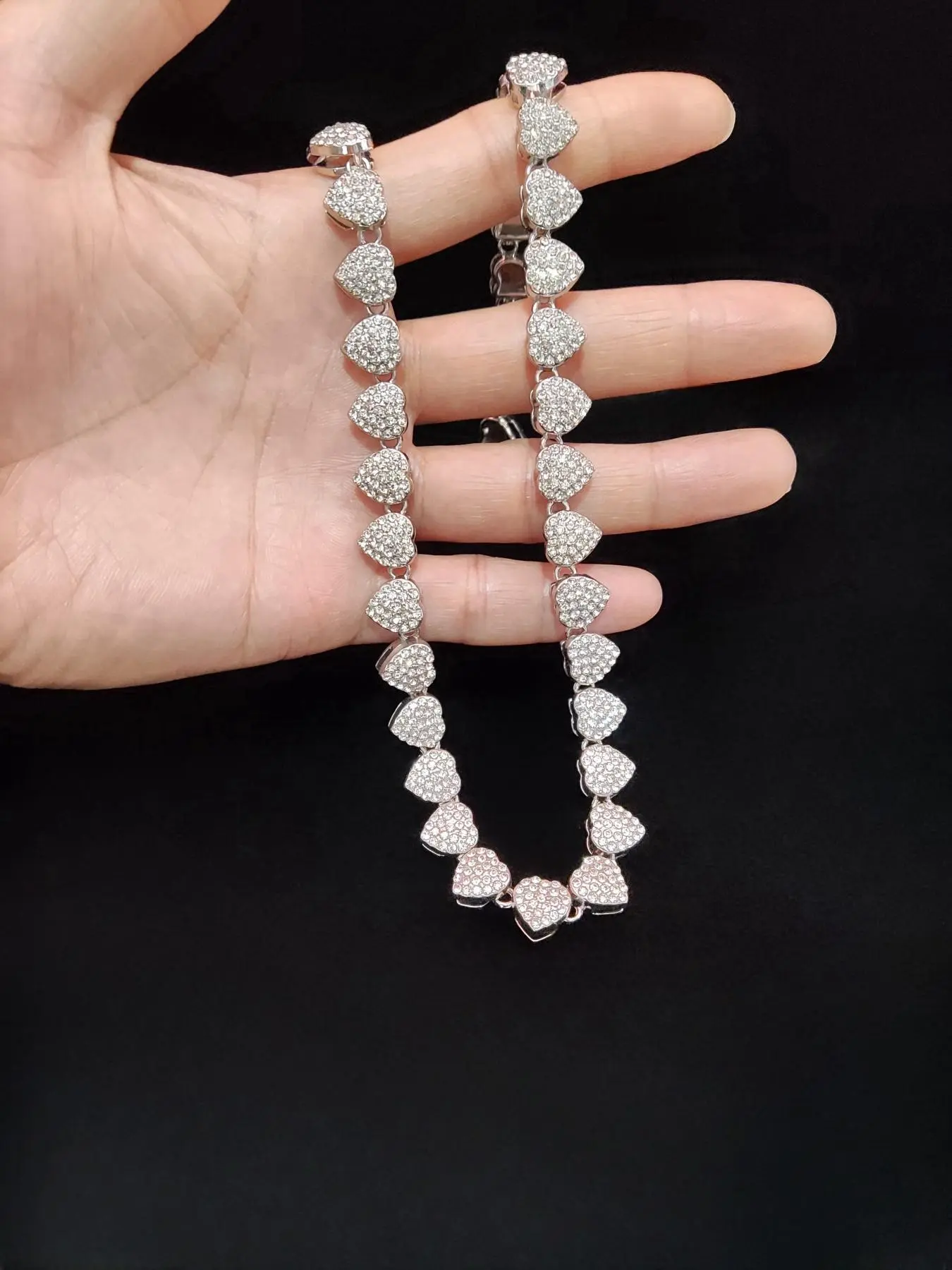 2Pieces/Set 10mm Love Heart Shape Chain Necklace and Bracelet Men or Women Hip Hop Iced Out Bling Bling Chain Necklace and Bracelet Fashionable Elegant Jewelry Set Fashion Set Jewelry Valentines Gift