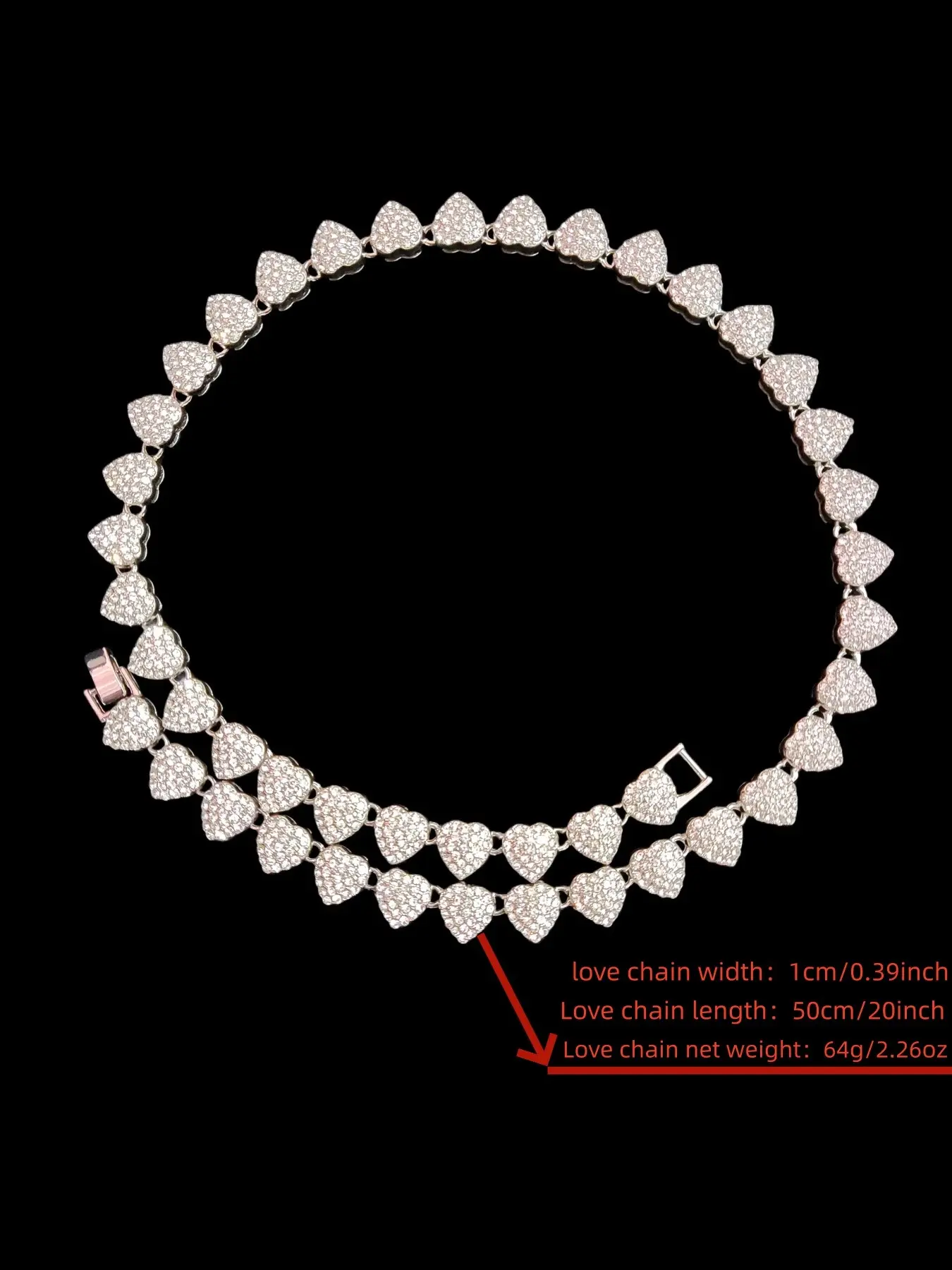 1Piece 10mm Rhinestone Glass heart-shaped chain necklace for Women, hip-hop punk heart necklace, Elegant Rhinestone Necklace, Love Heart Necklace, Exquisite Chain Jewelry, fashion jewelry, suitable for daily wear or party, Valentine's Day gift.