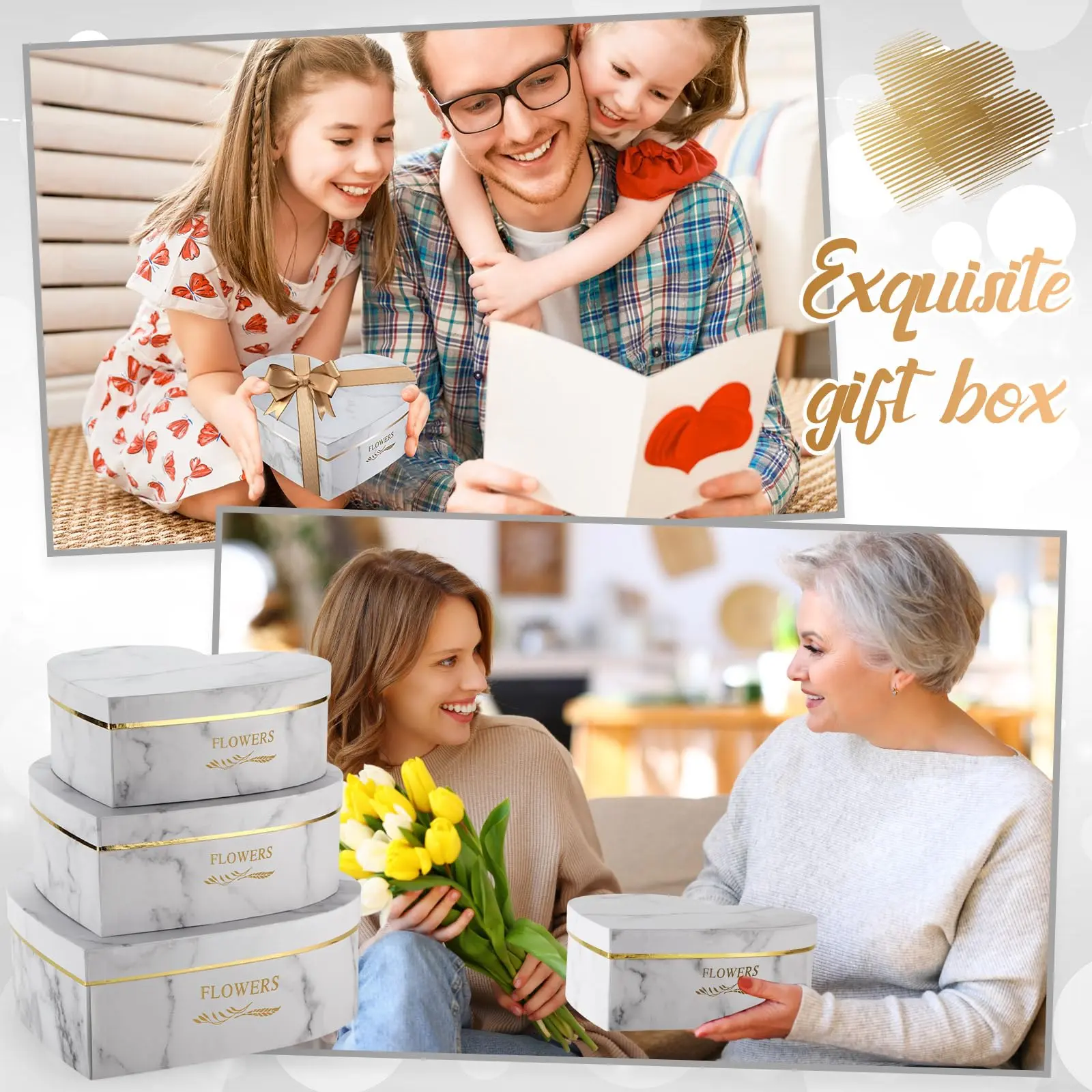 ·Exquisite Valentine's Day Design: heart shaped gift boxes with large space are suitable for placing flowers, food, toys, souvenirs and more; They are suitable for many occasions, such as, weddings, gatherings, holidays, etc.; Thoughtful and eye catching heart shape design can add elegance to your gifts