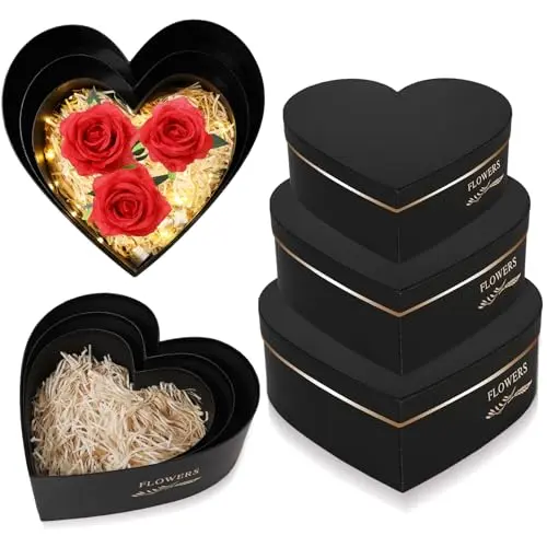 ·Quality Materials: heart shaped gift box is made of quality coated paper with hot stamping technology, with a sturdy structure ensuring durability; Each box is adorned with golden gilded lines to create an elegant and romantic atmosphere, making it an ideal gift box for those special moments; Shredded paper filler is also made of nice paper material