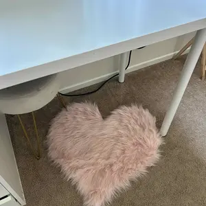 This is a cute fuzzy little heart shaped carpet and I love it. I put it right in front of my vanity!
