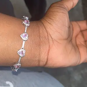 Faux Diamond pink heart bracelet that looks expensive but is super affordable #heartbracelet #tennisbracelet #jewelry #affordablefashion #tiktokshop