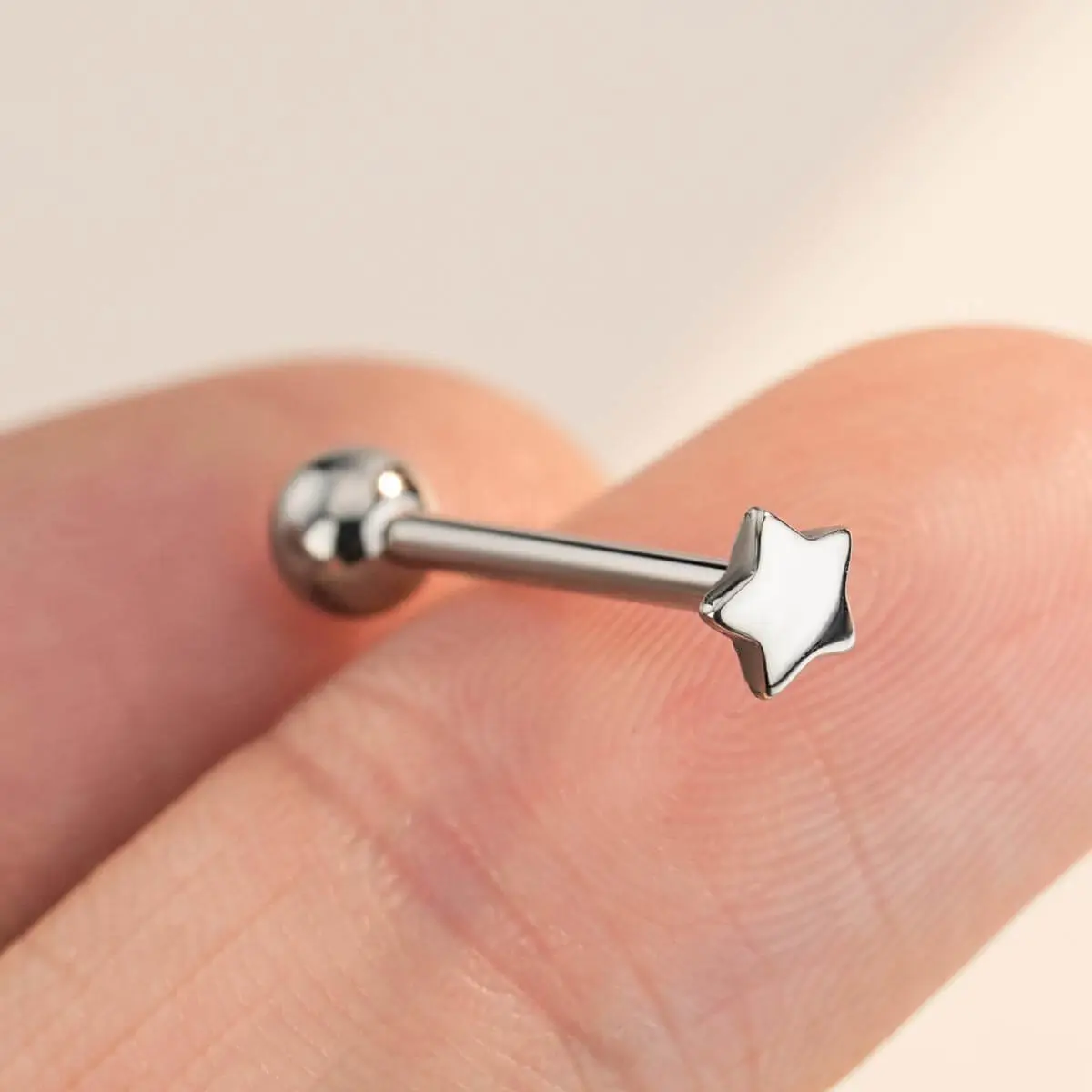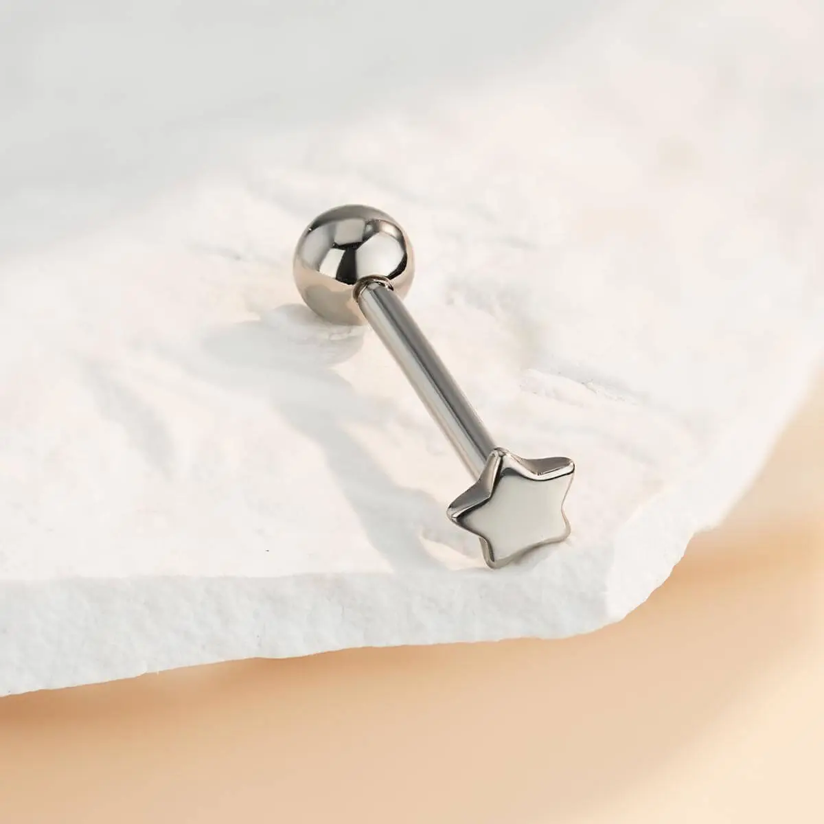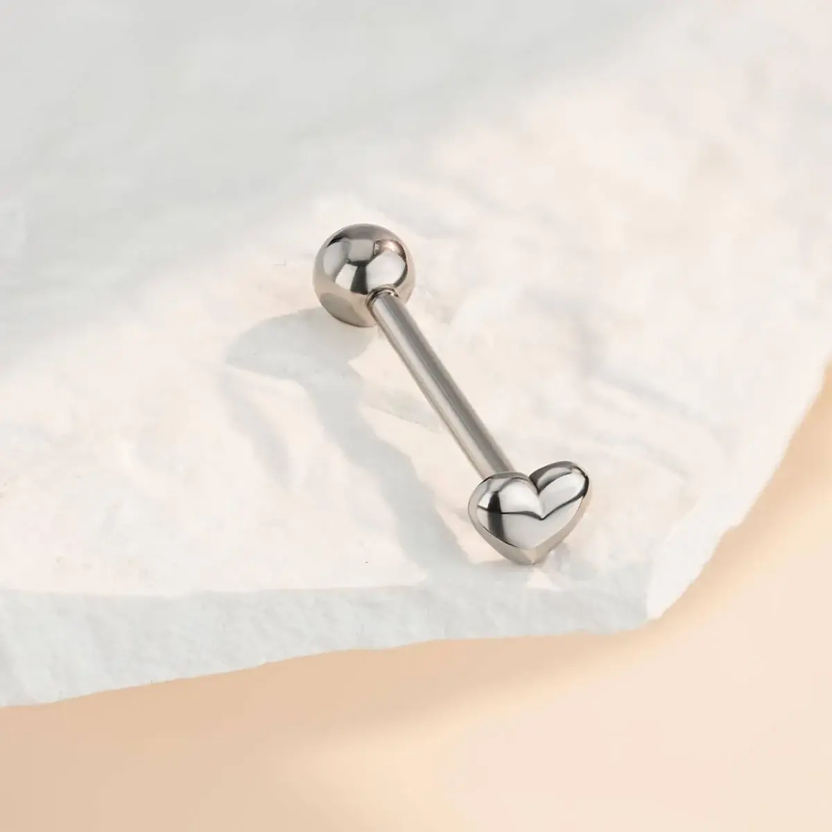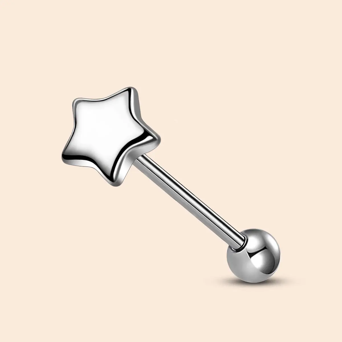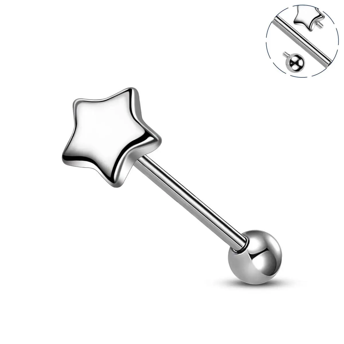 This tongue ring boasts a polished star-shaped top, adding a touch of romance and whimsy. The internally threaded design ensures a secure fit. A smooth post minimizes irritation, making it easy to insert and remove. Perfect for those seeking a stylish yet comfortable accessory.