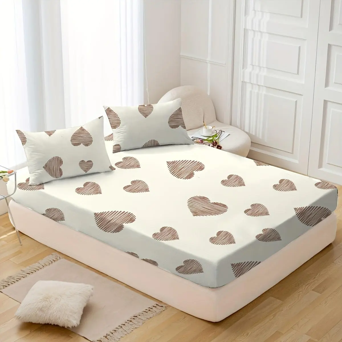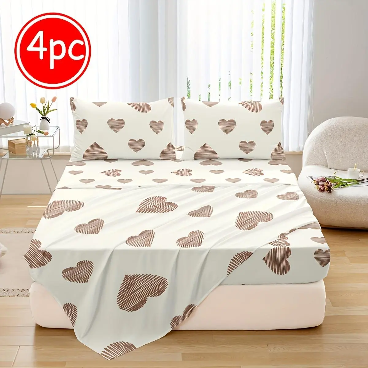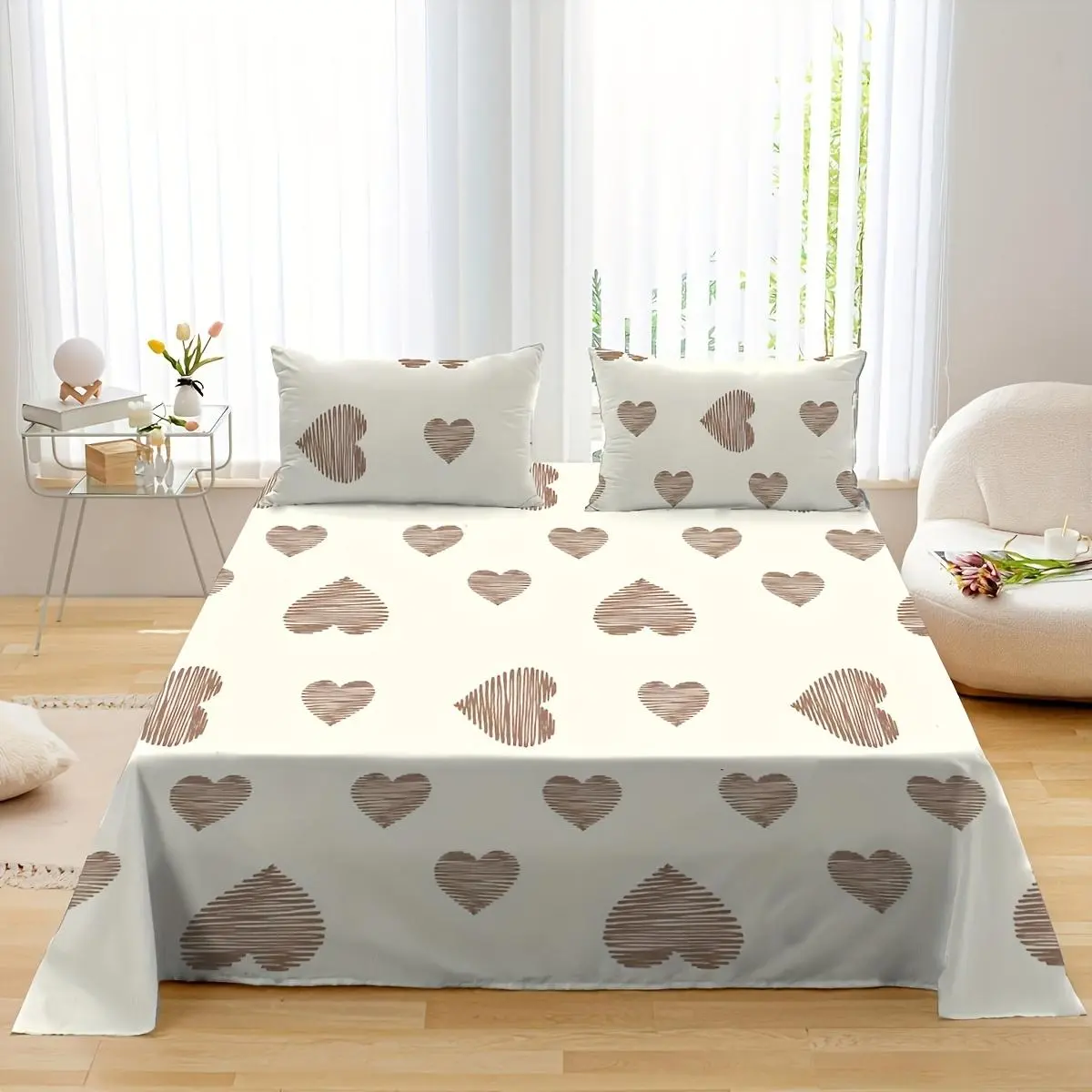 Heartbeat Wave Pattern Bedding Set, Including 1 Fitted Sheet & 1 Flat Sheet & 2 Pillowcase without Filler, Soft Comfortable Bedding Set for Home Bedroom