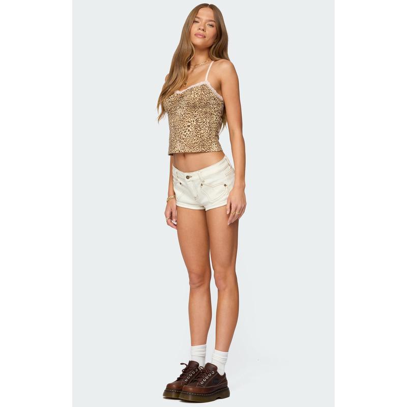 5. Edikted Women's Hearts Low Rise Micro Denim Shorts