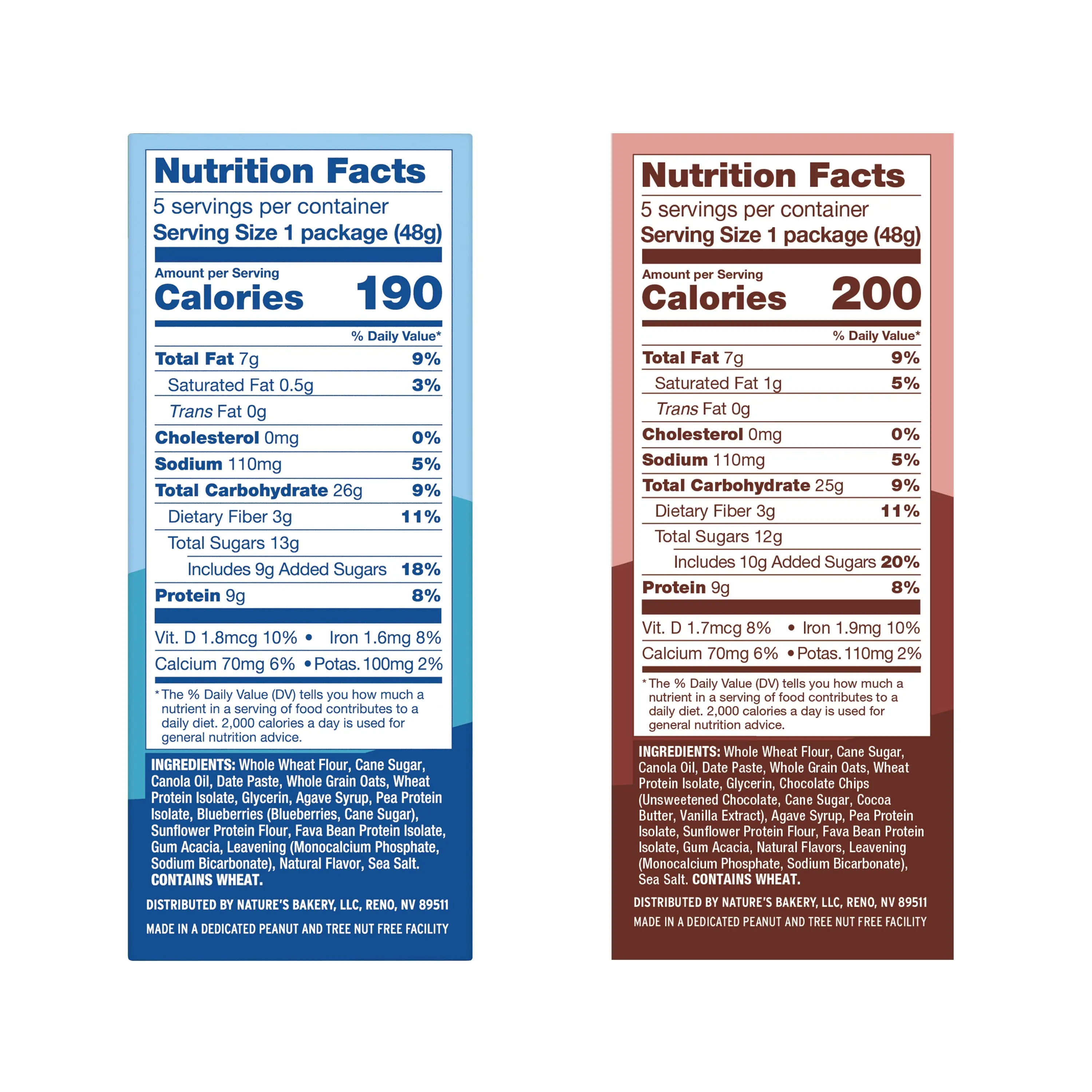 IngredientsWhole Wheat Flour,Canola Oil,Date Paste,Whole Grain Oats,Wheat Protein Isolate,Glycerin,Chocolate Chips (Unsweetened Chocolate,Cocoa Butter,Vanilla Extract),Agave Syrup,Pea Protein Isolate,Sunflower Protein Flour,Fava Bean Protein Isolate,Gum Acacia,Natural Flavor,Leavening (Monocalcium Phosphate,Sodium Bicarbonate),Sea Salt. Contains Wheat.