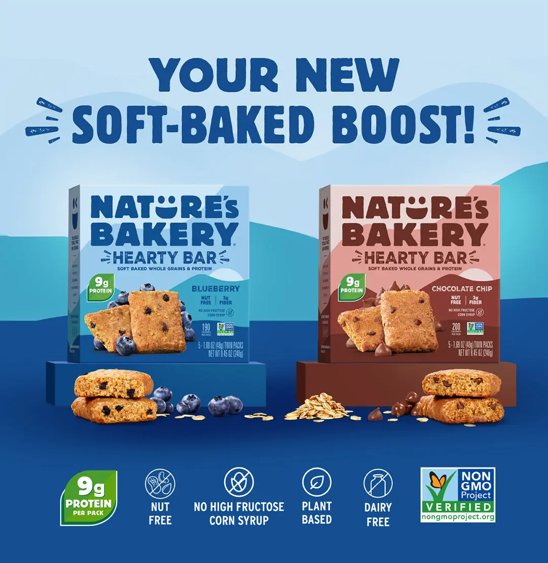 Meet your new soft-baked boost: HEARTY BARS!✨ Perk up snack time with delicious bars made with 9 grams of wholesome whole grains and 9 grams of 🌱plant-based protein🌱 This grab-and-go goodness is perfect for the whole family from afternoon pick-me-ups to weekend hiking or biking. Ready to fuel life’s daily adventures with snacks that taste as good as they make you feel? Time to grab a bar... and GO! 🏃‍♀️   Hearty Bars are available in Blueberry 🫐 (made with oats & real fruit!) and Chocolate Chip 🍫 (made with oats & dates!). 😋 Shop on our TikTok Shop or a Target near you!  #heartybars #naturesbakery #newproduct #target #snacks #snackbreak #snackbreak #snackideas #summer #summervibes #targetfinds #targethaul #targetrun #snackhacks