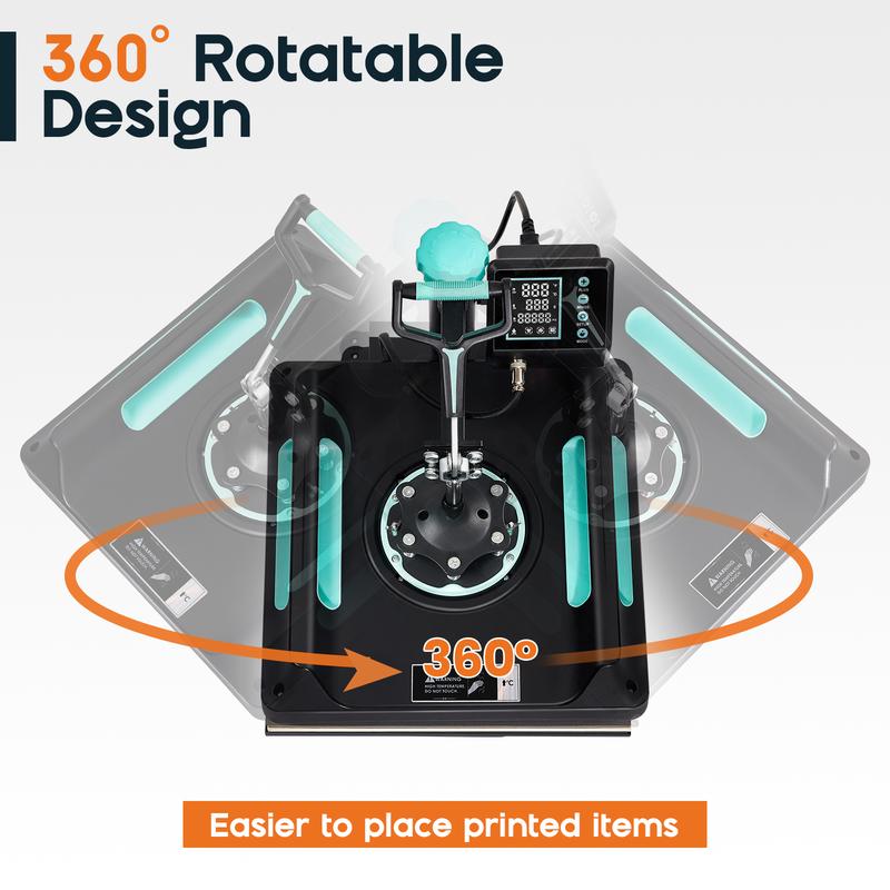 ·2-in-1 Design: Heat press machine includes a 30oz mug press, catering to your DIY heat transfer needs for both clothing and multiple cup sizes(only for 15x15 in, 16x24 does not have this function)
