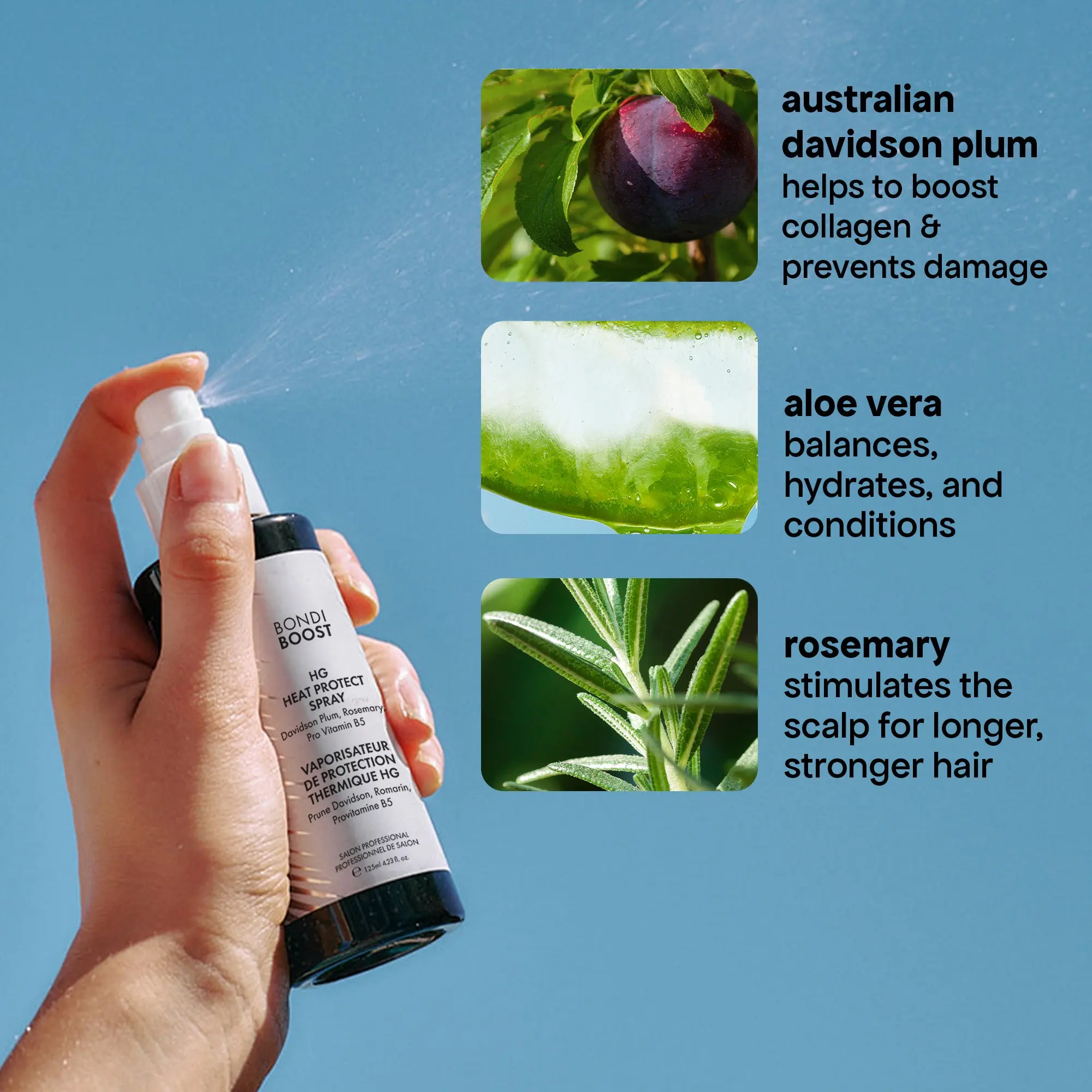 I love BondiBoost heat protectant for my long grey hair because it is lightweight and keep my ends from getting damaged. I blow dry and use a curling iron and I have found that BondiBoost products, in general, are really great for my hair!