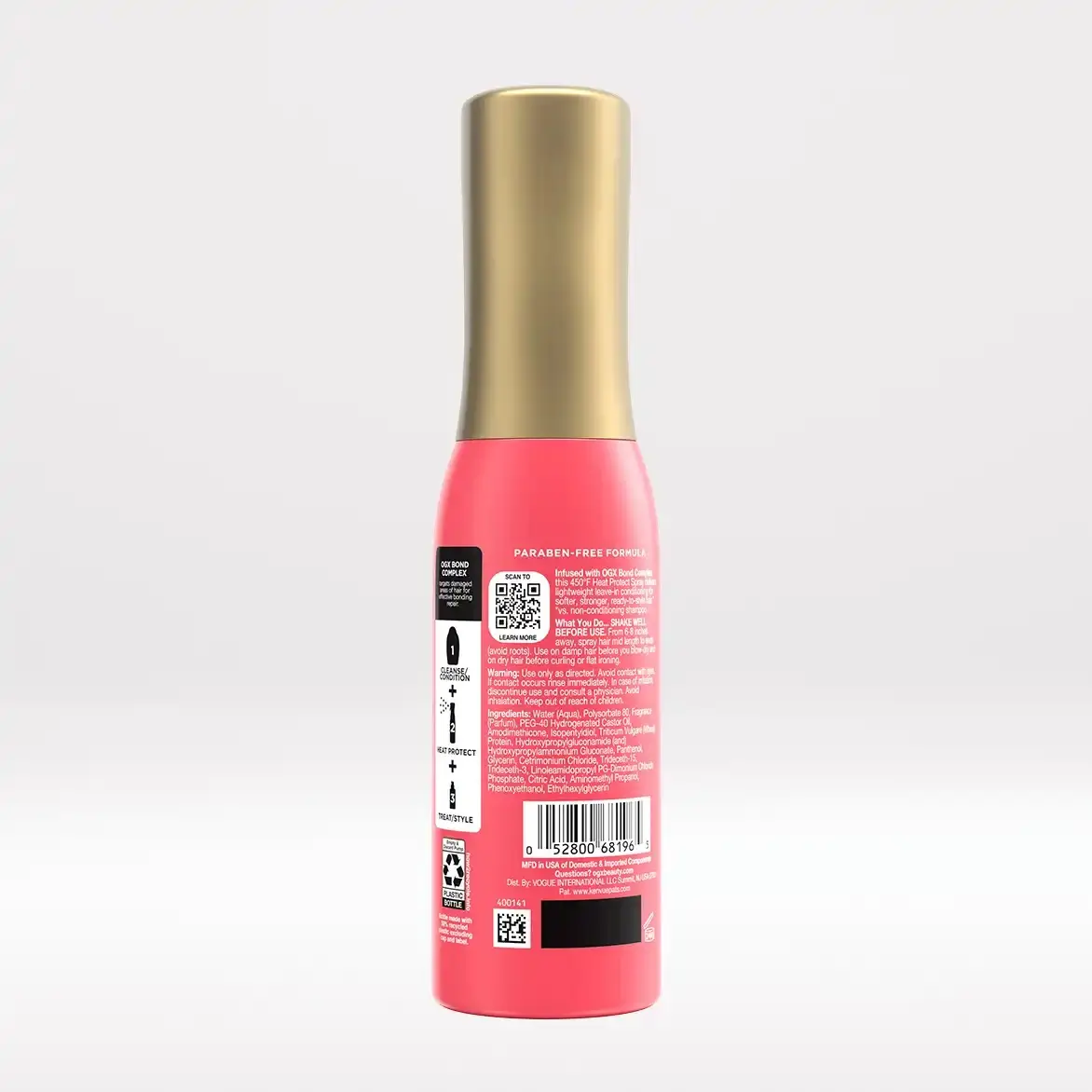 Protect and rejuvenate your hair with OGX Bond Protein Repair 450°F Heat Protect Spray. This advanced heat protectant is formulated with OGX Bond Complex, targeting damaged areas for effective bond repair without added weight. It delivers lightweight, leave-in conditioning, resulting in softer, stronger, and ready-to-style hair. The spray safeguards your hair from heat damage caused by styling tools up to 450°F. Regular use leads to 80% less breakage and six times more protection compared to untreated, damaged hair.