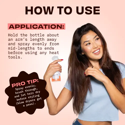 Spray generously onto hair before using any heat styling tools.