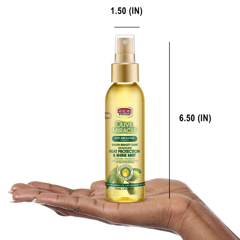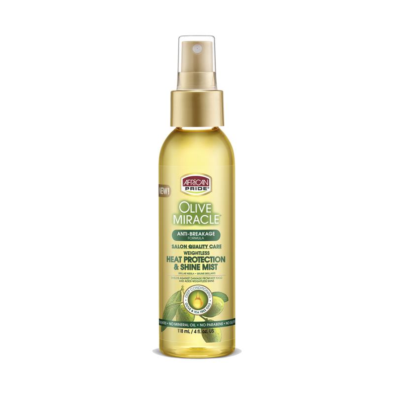5. African Pride Olive Miracle Heat Protection & Shine Mist, Salon Quality Care, Weightless, Anti-Breakage Formula