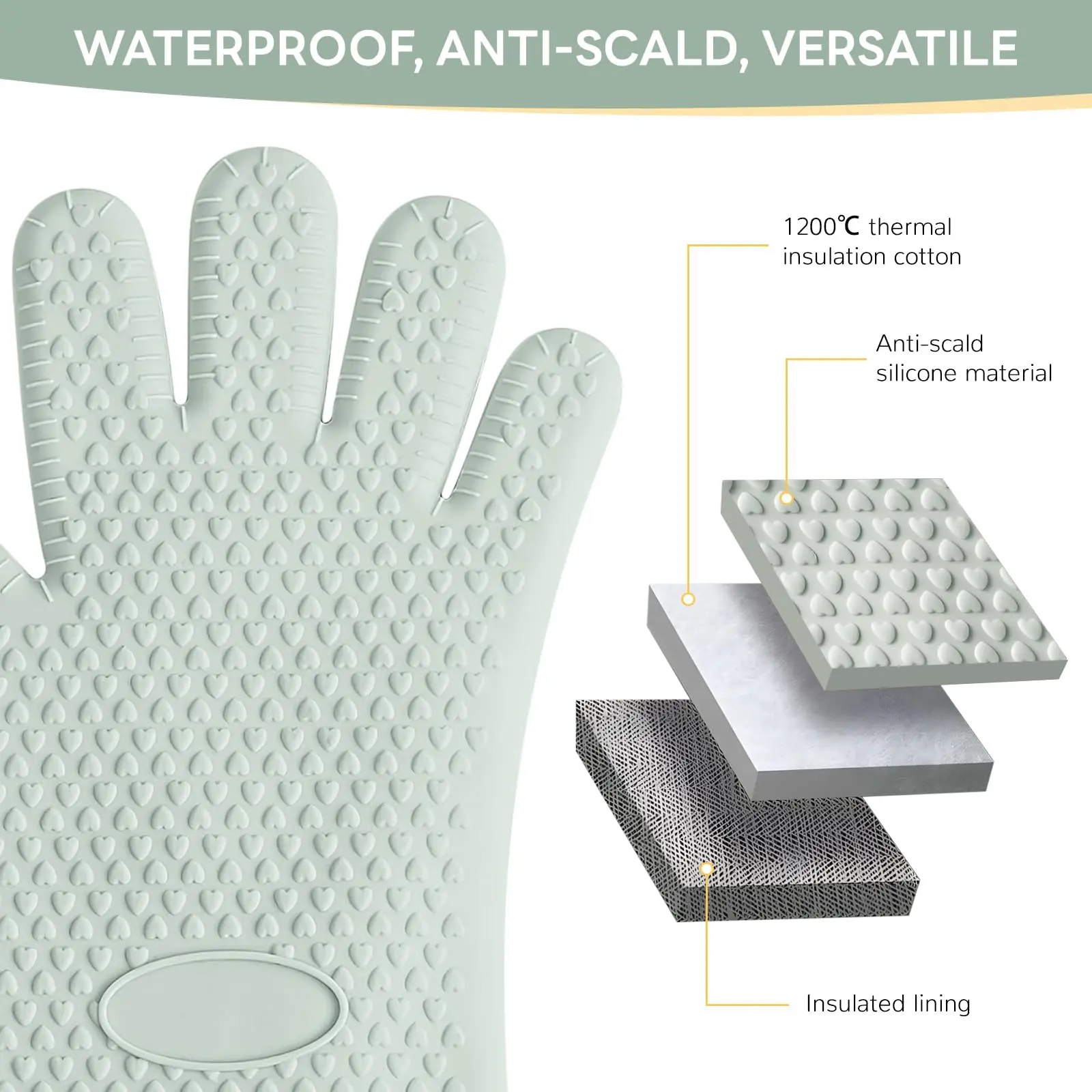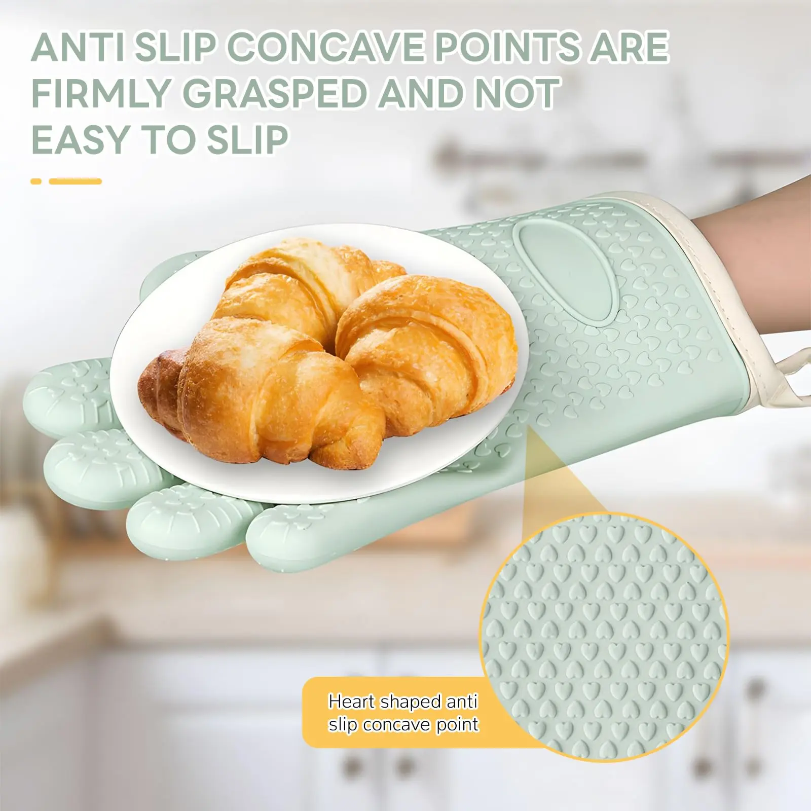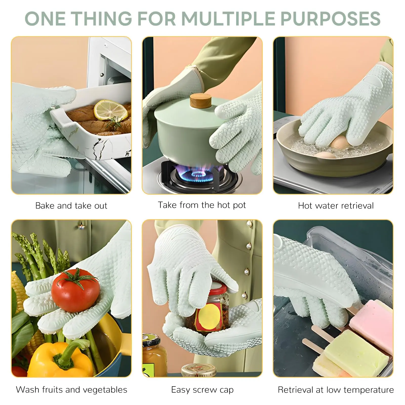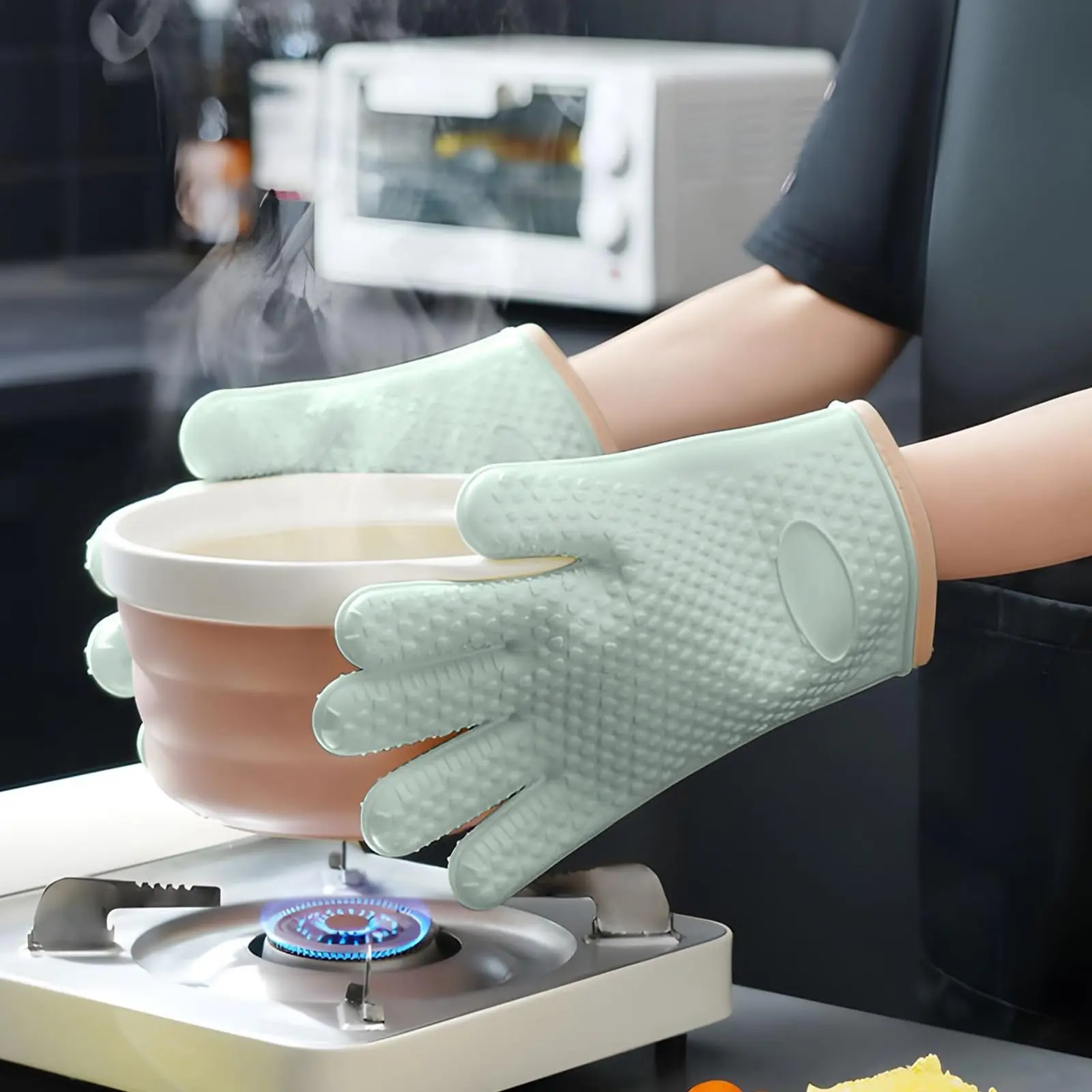 ·Versatile: These silicone oven mitts with fingers allow for secure grip and dexterity for multiple kitchen tasks like baking, handling hot pots, retrieving items from boiling water, washing produce, opening jars, and more.
