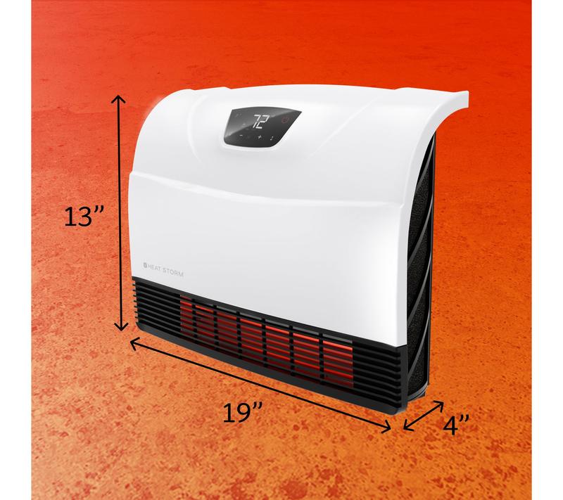 Create a cozy retreat in your bedroom, office, or bathroom with this Wi-Fi enabled infrared heater, designed to save floor space while delivering customizable warmth. Easily control the settings and heating schedules from your phone or the remote, and enjoy peace of mind with child lock mode and a cool-to-the-touch grill for added safety. Three power modes and a dimmable display let you tailor comfort for any moment. From Heat Storm.