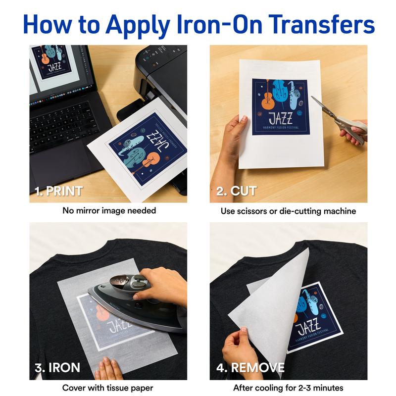 Avery Printable Heat Transfer Paper for Dark Fabrics, 8.5" x 11", Inkjet Printer Compatible, 5 Sheets of Iron On Transfer Paper (3279)