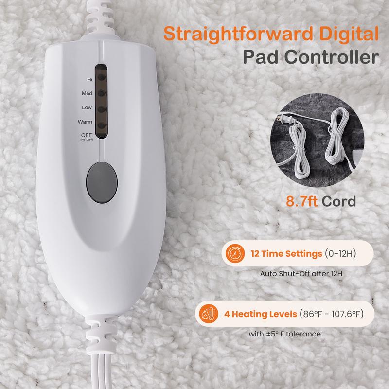 ·10 Heat Levels & 22 Timer Settings: With 10 precise temperature settings (89.6°F - 109.4°F) and 22 programmable timer options (0H - 12H), this blanket adapts to your comfort needs. The auto-shutoff function ensures safety and peace of mind. ⏳