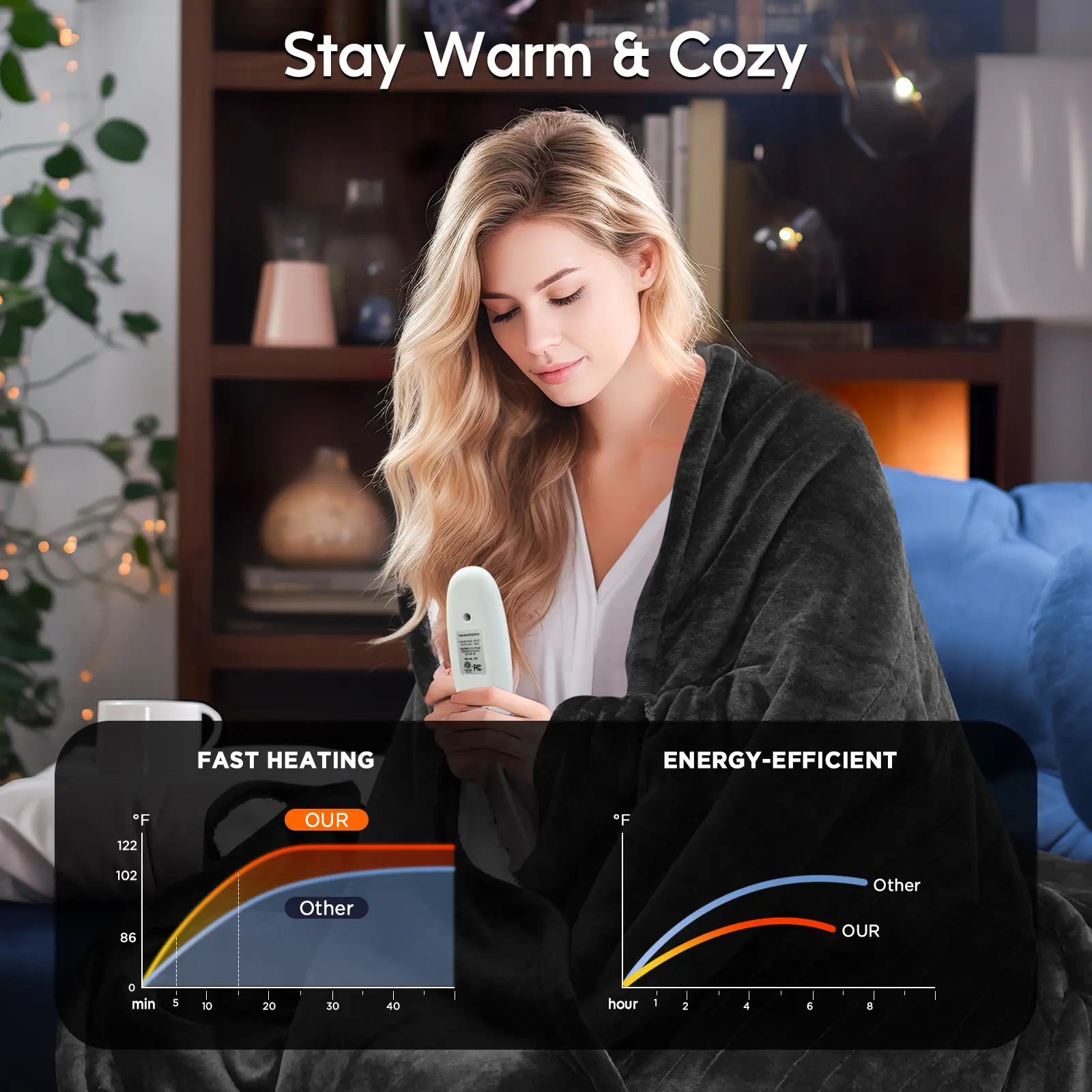 Amazing, Amazing, Amazing. I am a fulltime rv momma and my bedroom doesn't get any of the heat from the front so this blanket is making my winter Amazing. Thank you so much for such a quality product