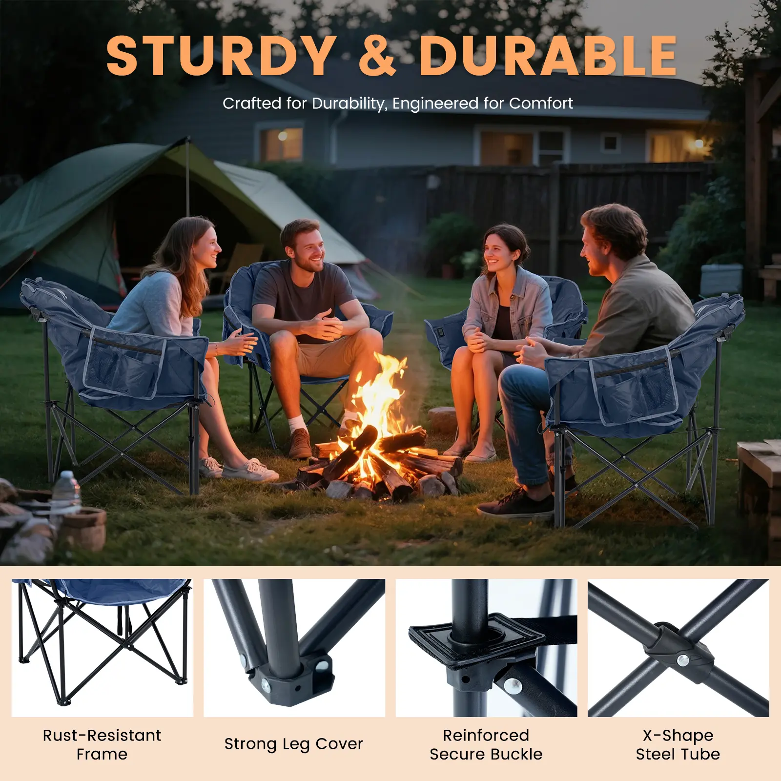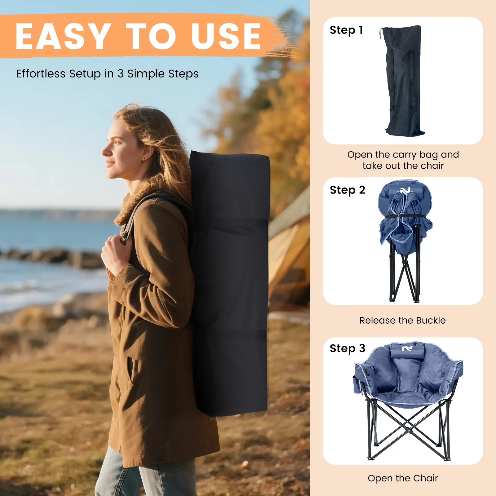 Crafted with high-quality materials and a robust steel frame, this camping chair supports up to 500 pounds. The thickened padded seat and backrest enhance durability and comfort, making it both a practical and luxurious choice for all your outdoor moments.
