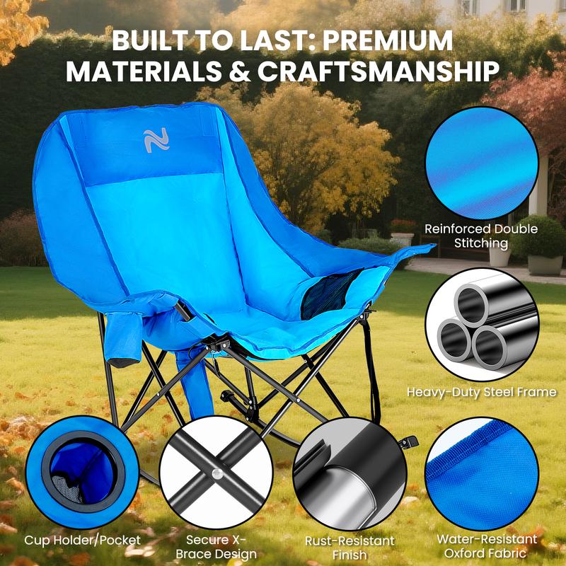 Built with heavy-duty X-shape supports and resilient 600D Oxford fabric, this chair holds up to 400 lbs. Weather-resistant and double-stitched for long-lasting durability in various outdoor settings.