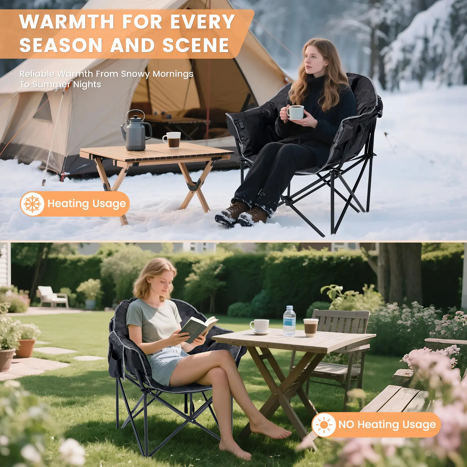 Stay cozy anywhere with the chair that HEATS! Perfect for cold mornings, evenings, and all your outdoor adventures.
