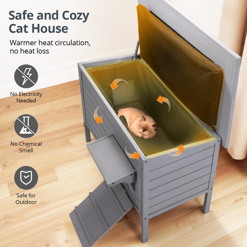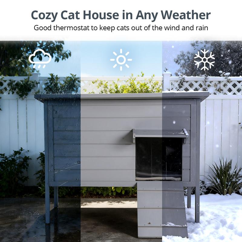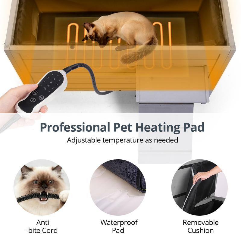 ·🌡️ Outdoor cat house built with sturdy solid wood and 6-sided all-around insulated liner. High-quality heating pad keeps animals warm even below 0°C. 🐱
