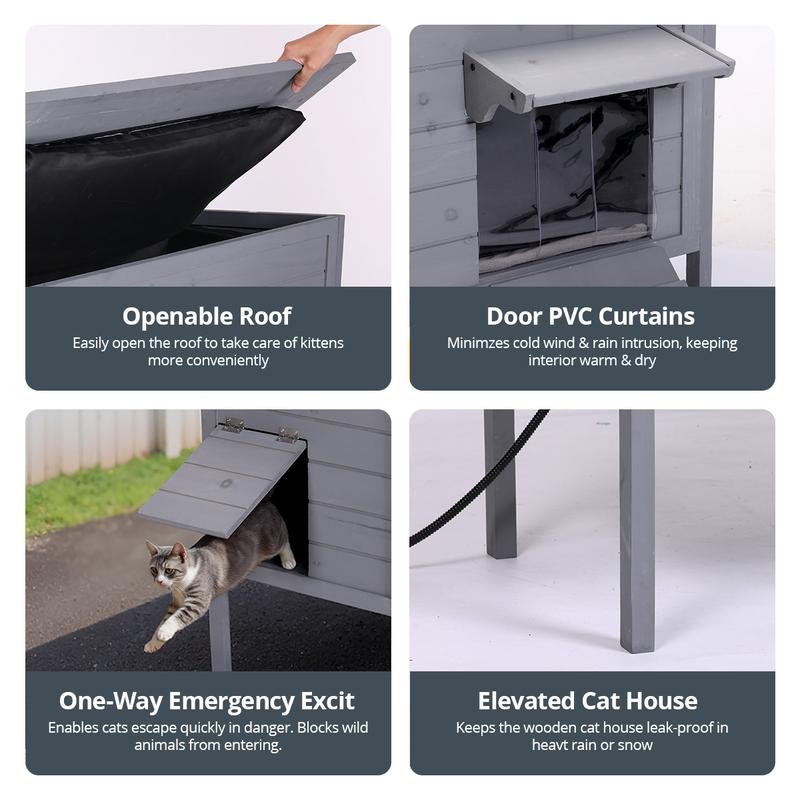 ·🌦️ Solid fir wood provides heat insulation, withstands extreme weather and accidental impacts. PVC curtains protect pets from elements and natural enemies. 🐱
