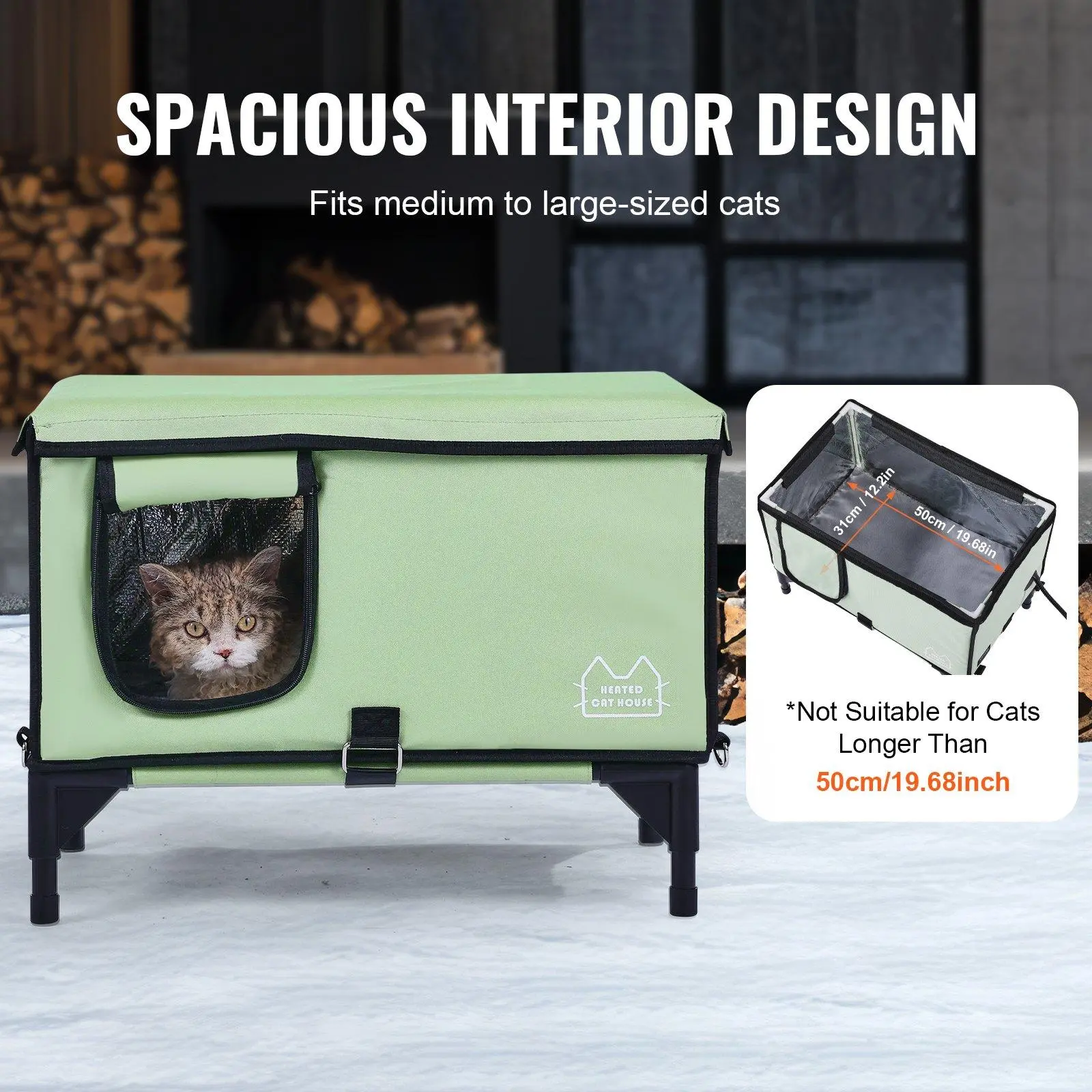 ·Private and Comfortable Design: Private and Comfortable Design: The internal dimensions of 52×33cm/20.47×12.99 in accommodate medium to small cats easily, while the door curtain size of 15×18cm/5.90×7.08 in provides convenient access for your feline friend, making this outdoor cat house heated an ideal choice for your pet. Friendly reminder: In extreme weather conditions such as rain or snow, please promptly move the heated cat house to avoid prolonged exposure to wet conditions. It is not recommended for cats longer than 52cm/20.47 in to enter the cat shelter.
