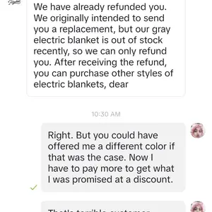 I contacted support because the blanket was delivered ina torn open box, the only thing inside was the vacuum sealed blanket. They said they'd send a replacement. when I contacted them for the replacement they automatically gave me a refund and said to buy another color fore twice the price.