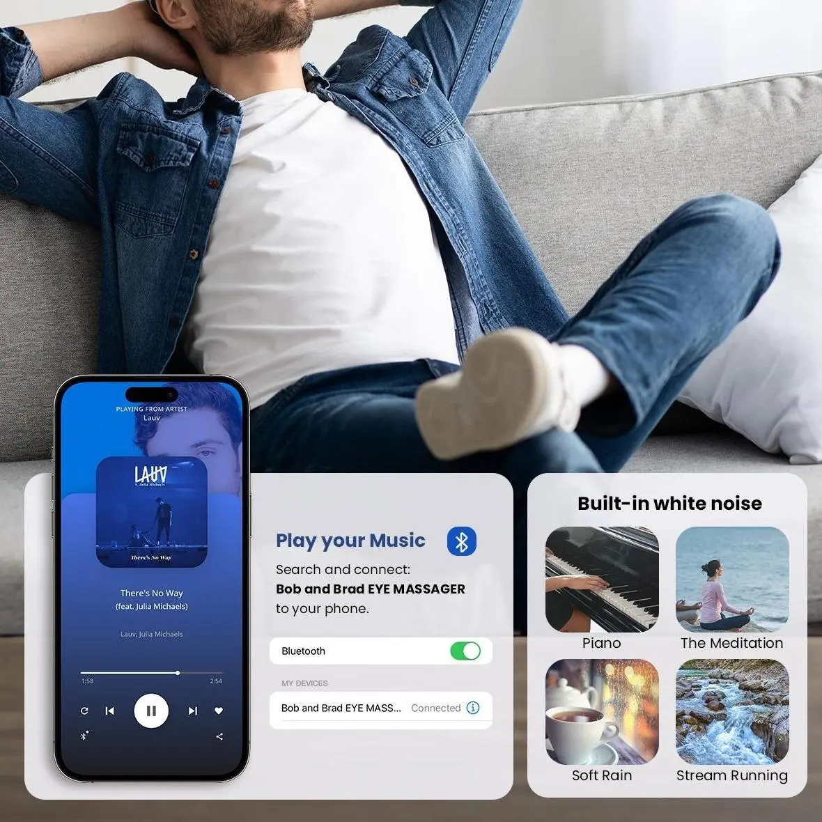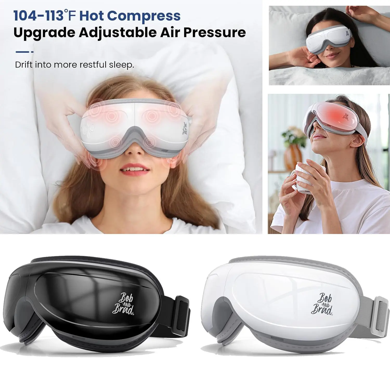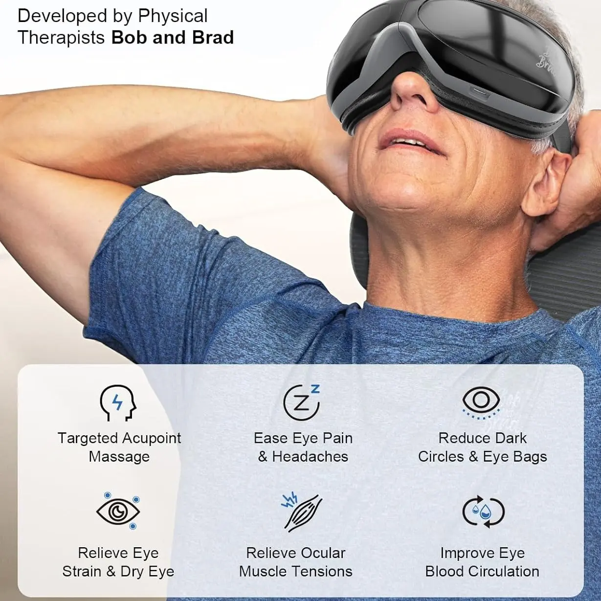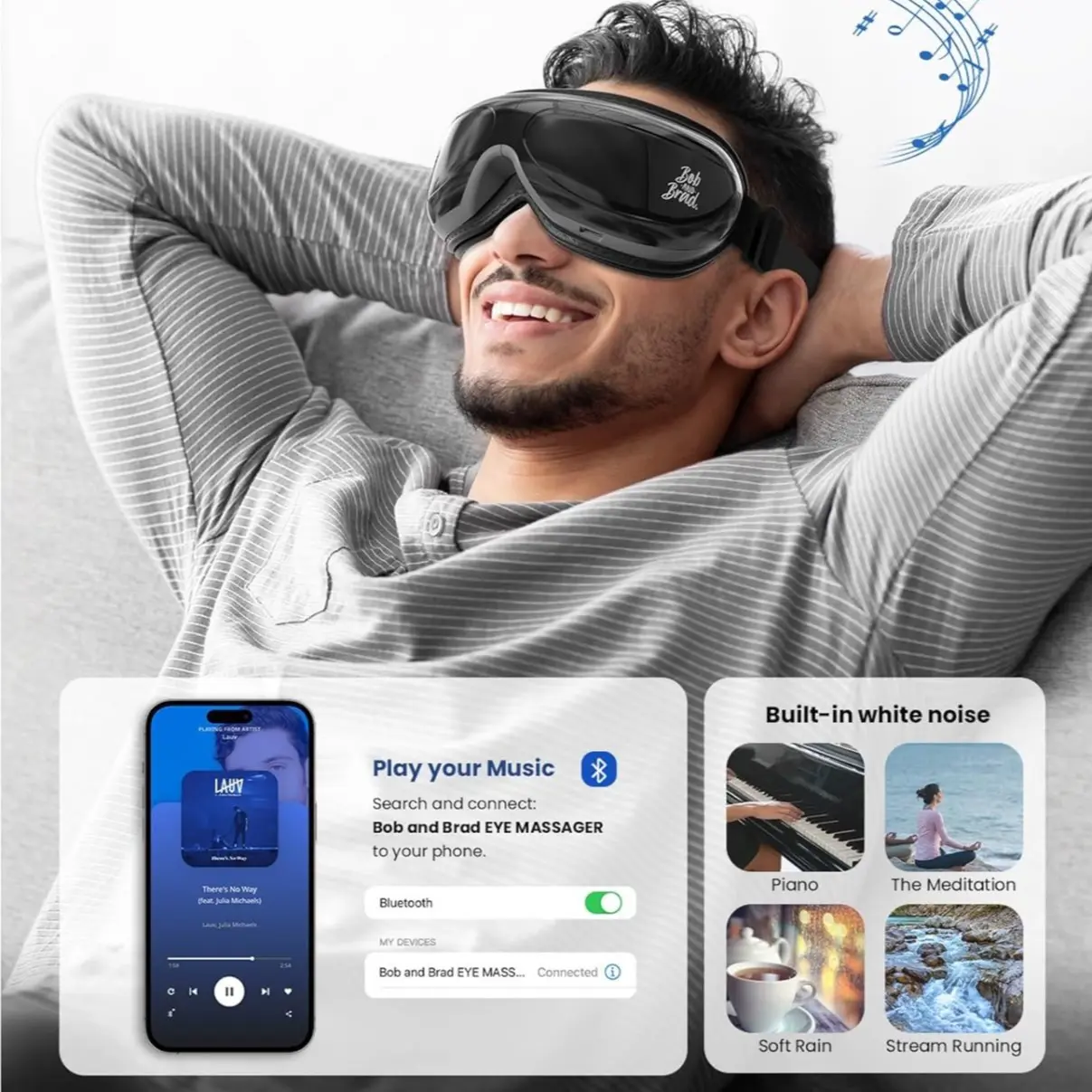 Relax and enjoy a more restful sleep with the BOB AND BRAD Smart Eye Massager EyeOasis 2 - Heated Eye Massager with Compression and Music for Migraines. Experience the ultimate comfort and relaxation with our innovative technology.
