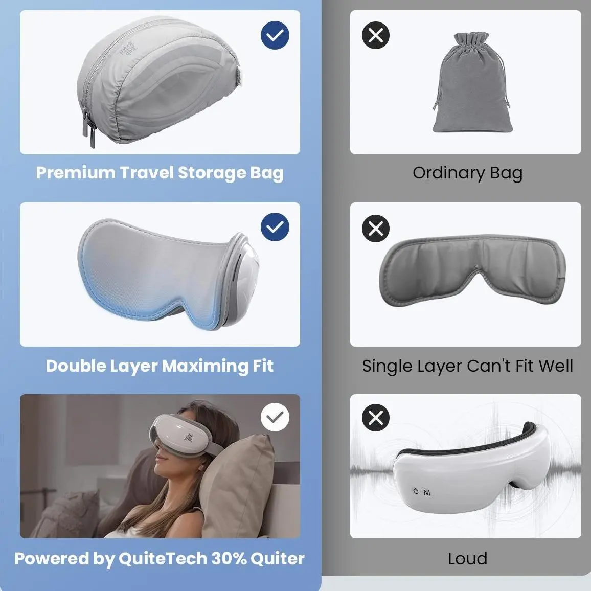 ·Double-Layer Design: Reduces pressure directly on the eyeballs, enhancing the overall massage experience.