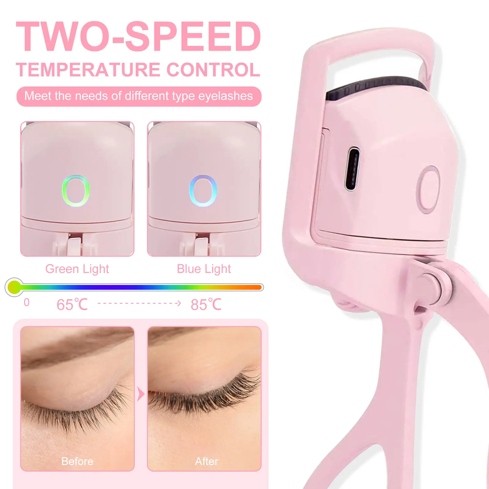 ·{2 Modes} The heated eyelash curler has 2 temperature modes: 65°c (149°F) and 85°c (185°F), which can heat up quickly in about 10-30s.