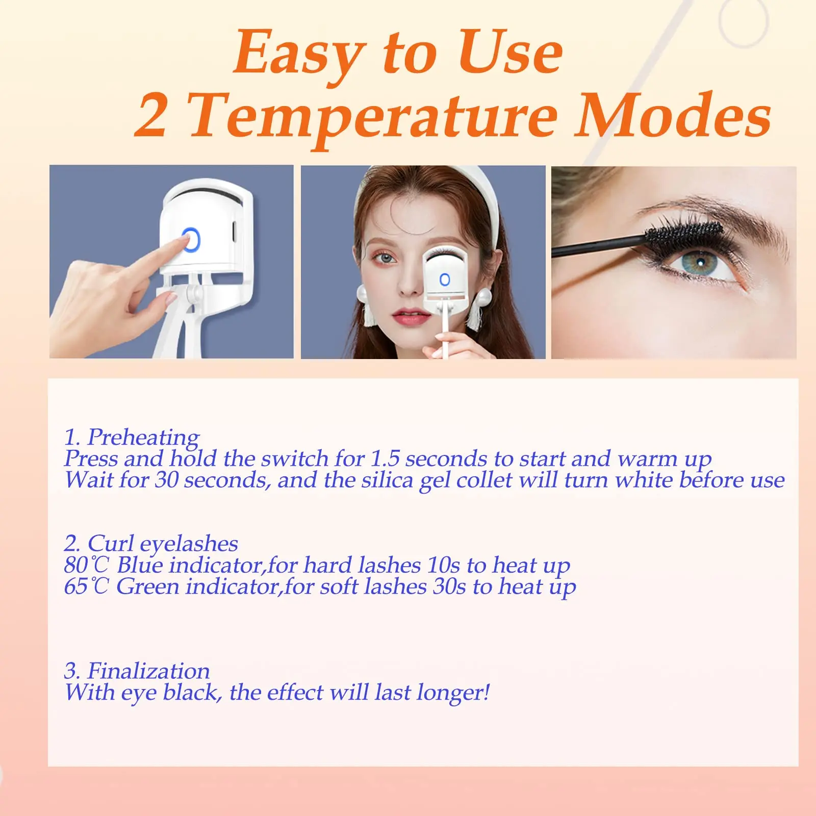 【Essential Items in Beauty Package】This electric heated eyelash curler combines a traditional curling iron and brush, and the heated section is curved to fit the curve of your lashes. This USB-Rechargeable Curler is a safe and comfortable solution for enhancing your lashes!