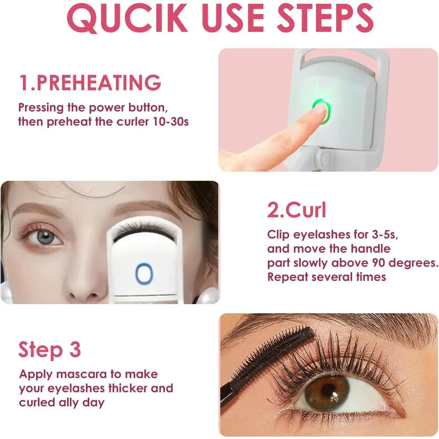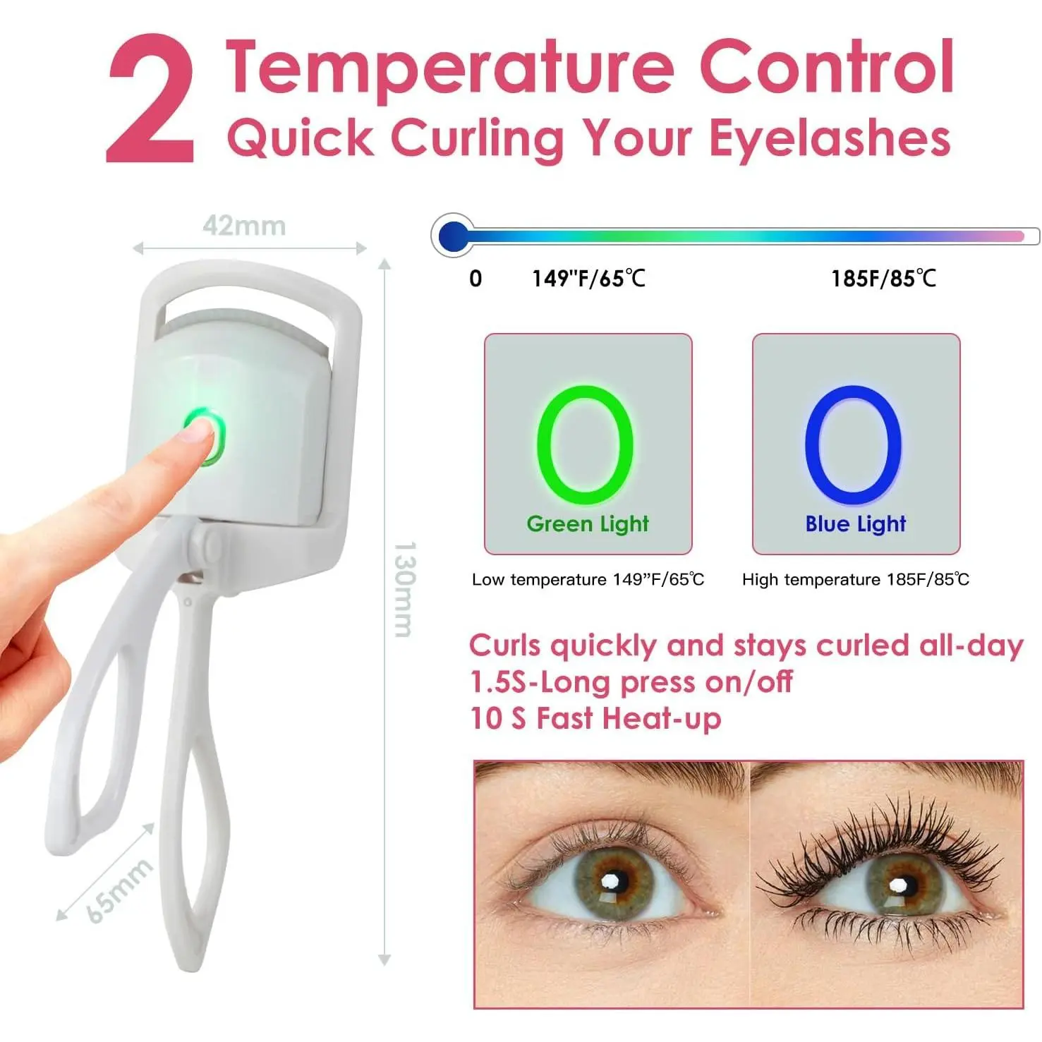 5. Heated Eyelash Curler Electric Rapid Heat Lash Curlers with 2 Heating Modes for Women Makeup Quick Natural Lash Curling Rechargeable Cosmetics 3.7V Output 180mAh Battery