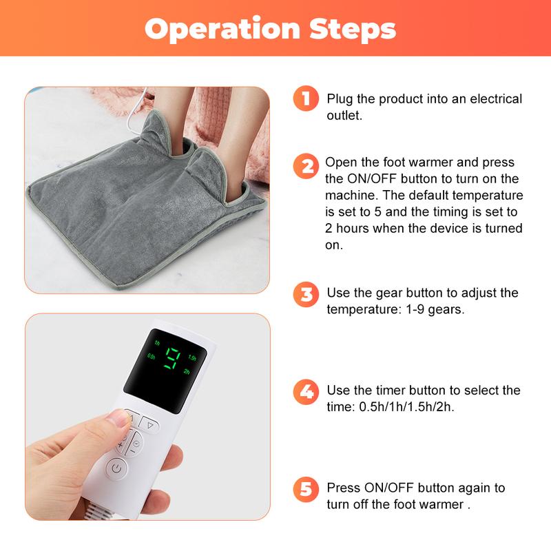 【Adjustable Settings】: Featuring 9 temperature levels, allowing you to customize warmth for optimal foot comfort in cold weather.