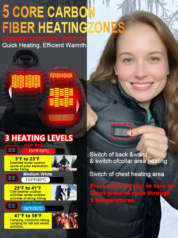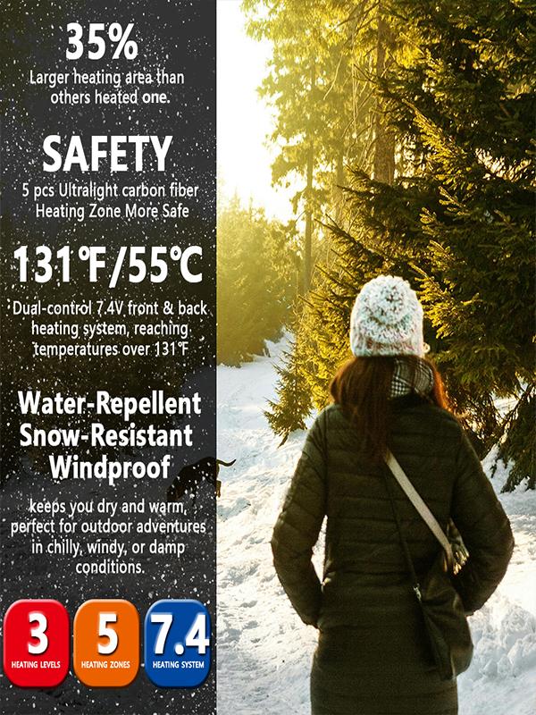 ·Premium Material: This heated jacket is made from 100% polyester fiber, offering both softness and durability. It provides exceptional warmth and comfort, ensuring you stay cozy in cold weather.