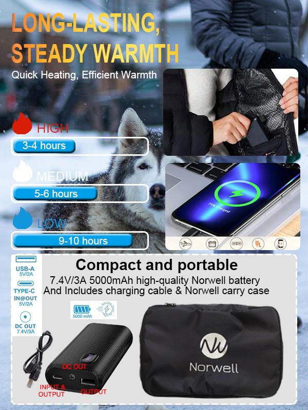·Battery & Washability: Equipped with a 7.4V/3A, 5000mAh SAFE battery, the jacket provides up to 10 hours of heat. Making the jacket machine washable once the battery is taken out, for easy maintenance.