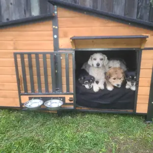 Give your dog a warm, safe outdoor retreat with this wooden heated dog house. Featuring a reinforced metal frame, asphalt roof, and a removable insulated liner, it provides year-round comfort. The built-in heating pad ensures your pet stays cozy without overheating, while easy-to-clean design makes maintenance hassle-free. Perfect for dogs who love the outdoors, rain or shine.