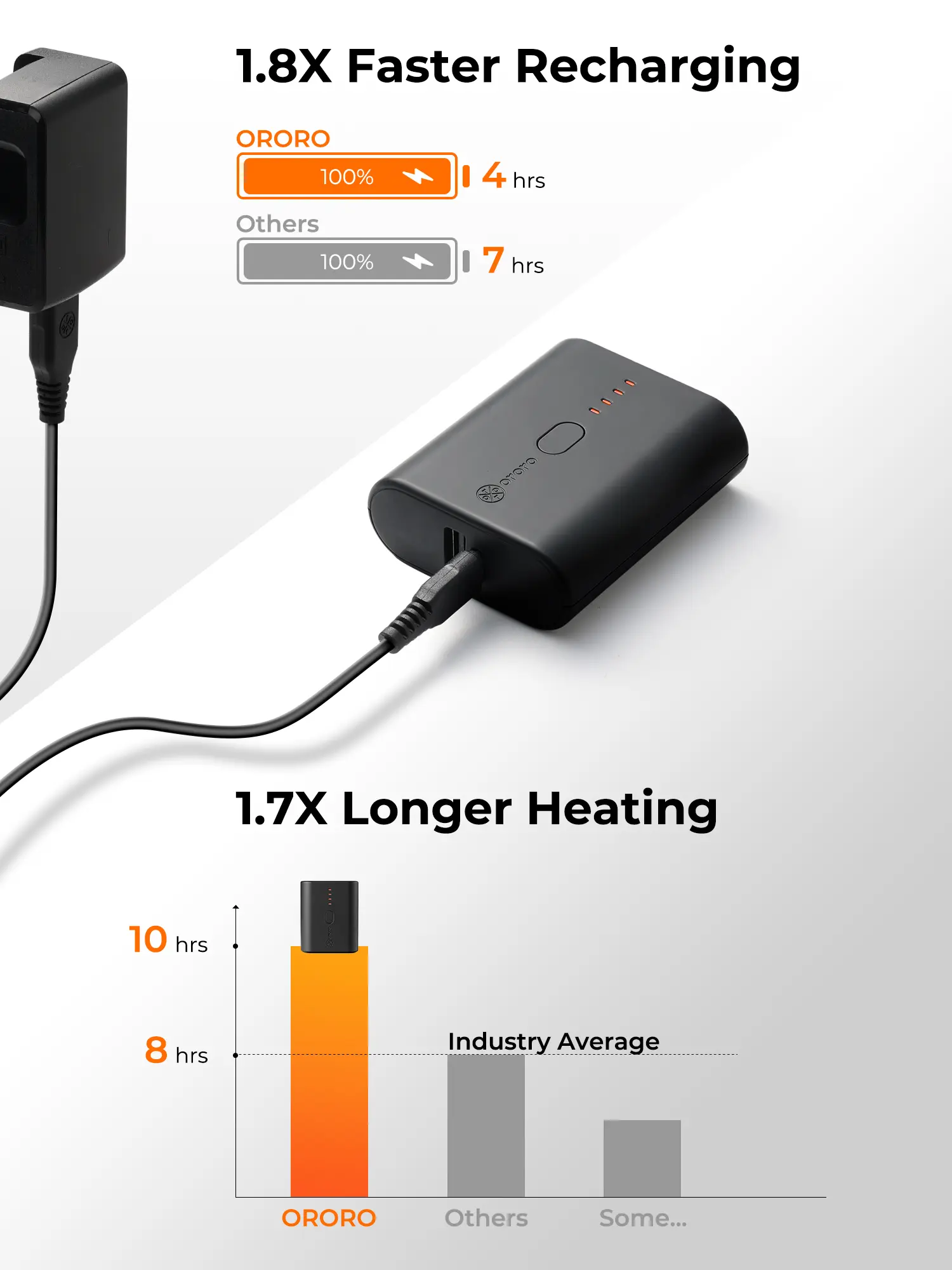 Up to 10 working hours (3 hrs on high heating setting, 6 hrs on medium, 10 hrs on low)