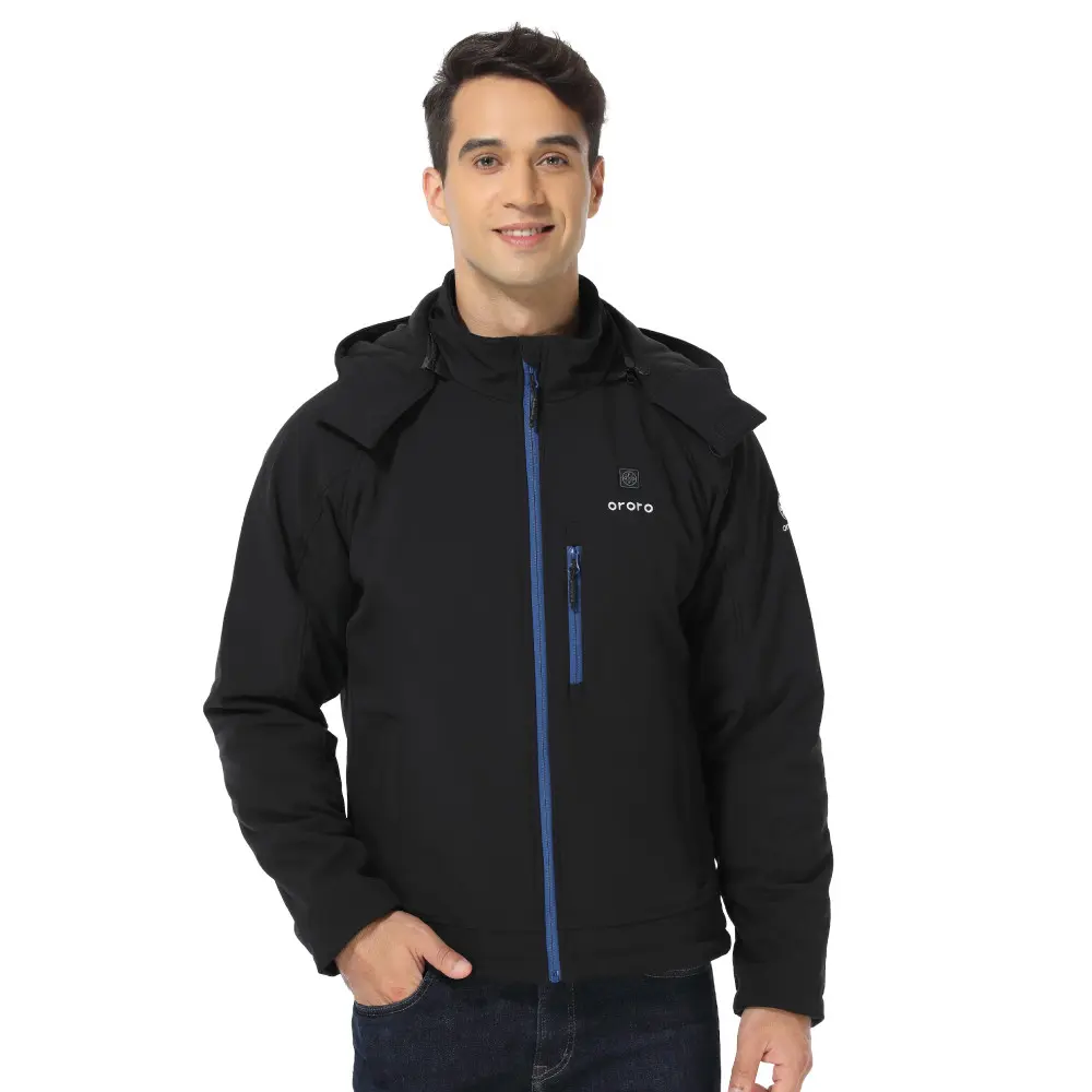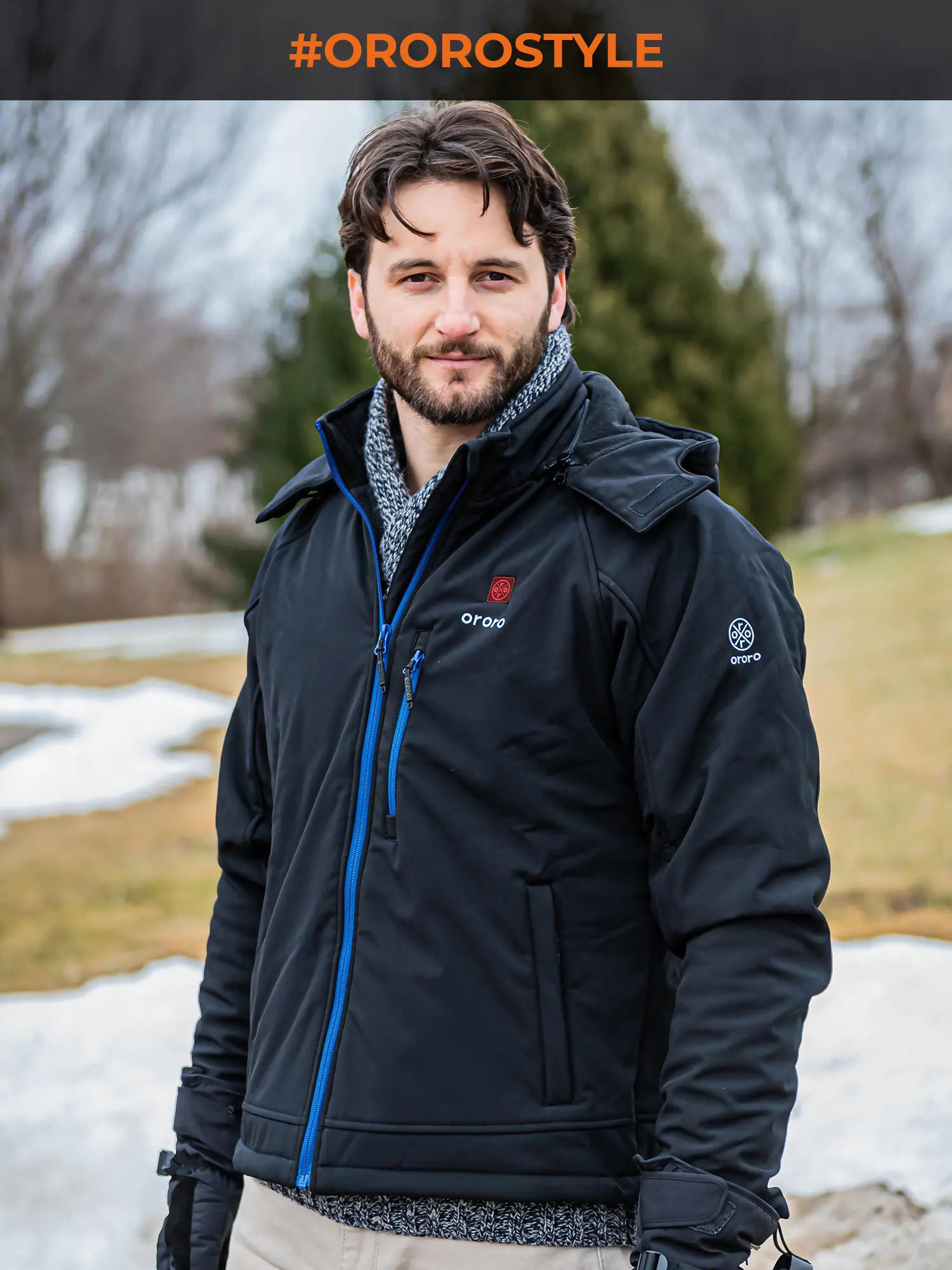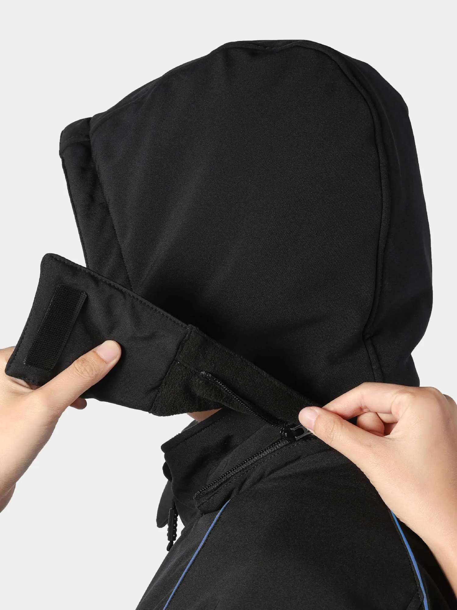 Stay warm and comfortable with our heated soft shell jacket, featuring 3 heated zones on the left and right chest and mid-back. With a battery life of up to 10 hours and a detachable hood, you can enjoy long-lasting warmth and versatile protection.