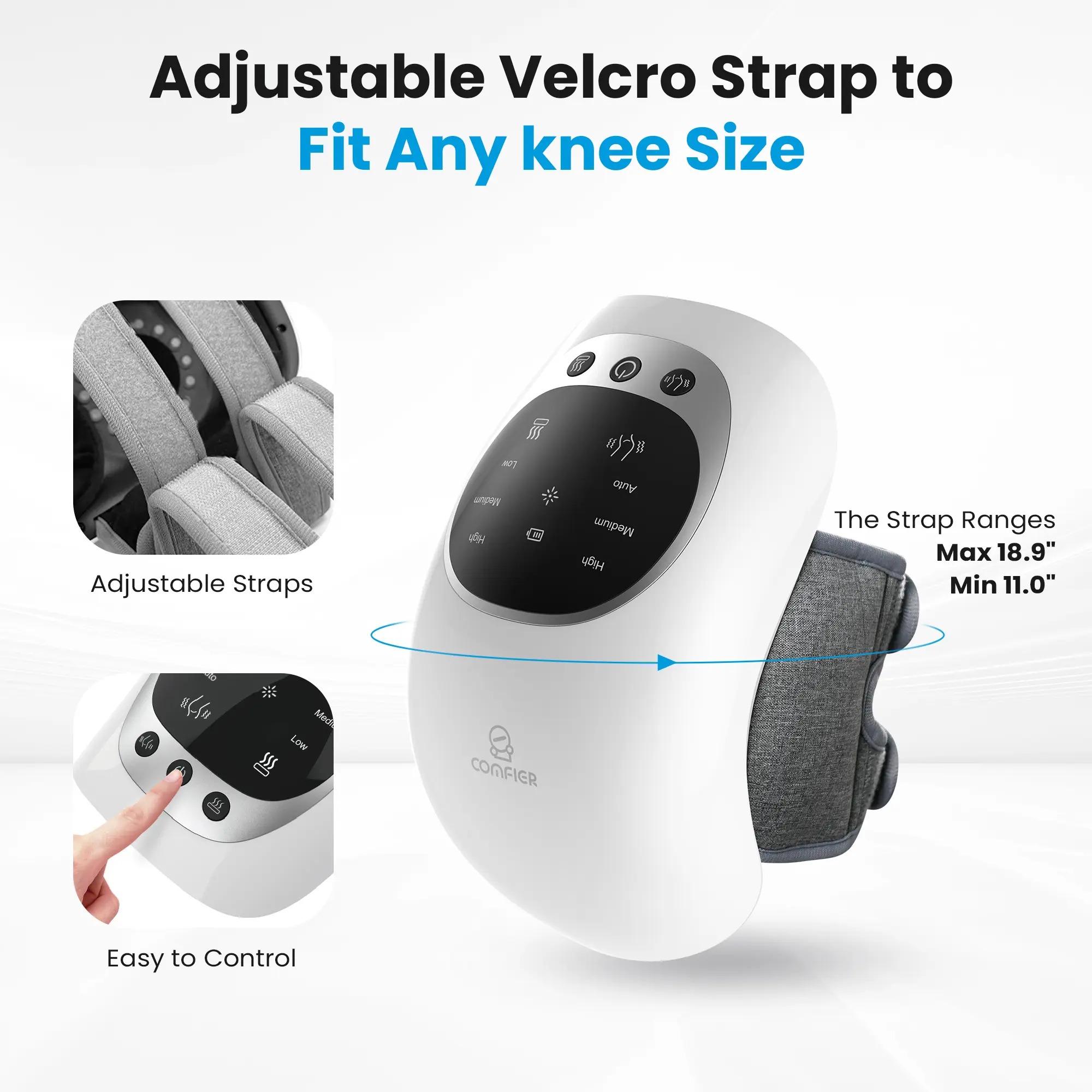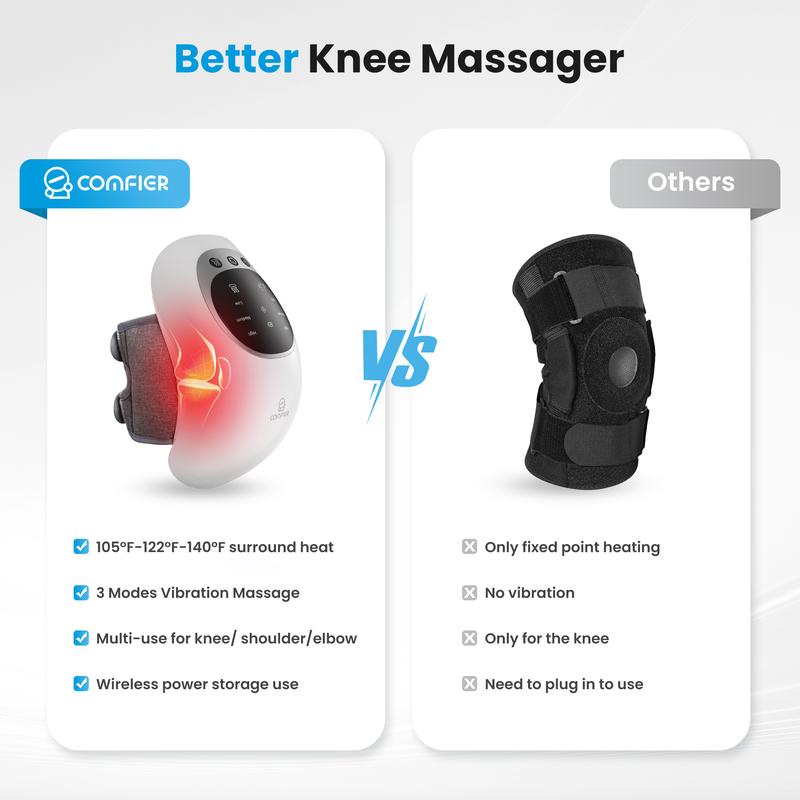 The COMFIER knee massager is cordless, rechargeable with a 3000 mAh battery, and weighs just 1.4 lbs. Its portability allows you to enjoy relaxing knee massages anywhere, whether at home, the office, or on the go.