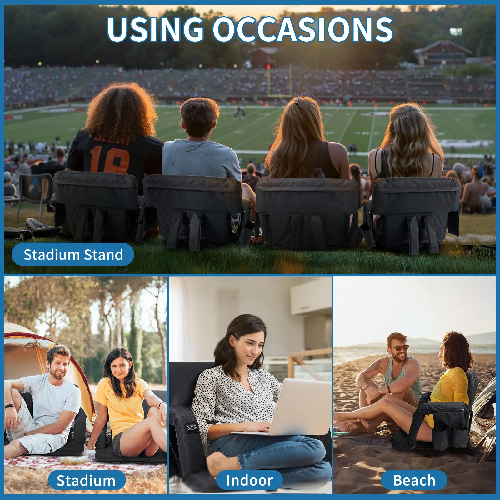 • Wide Usage: Ideal for sports like football, baseball, basketball, and outdoor activities. Perfect for families at sports events or camping. Say goodbye to hard, chilly bleachers! Batteries not included.