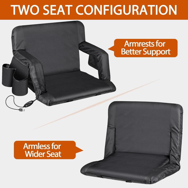 Versatile Outdoor Use: Perfect for a variety of venues, this heated stadium chair is ideal for sports events, camping, beach outings, and more, ensuring you stay comfortable wherever you go.