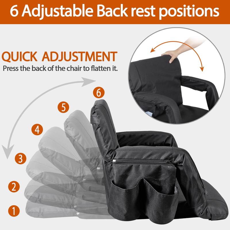 Adjustable Back Support: Choose from 6 different tilt angles for personalized comfort with our Foldable Stadium Chair, designed to offer excellent back and arm support.