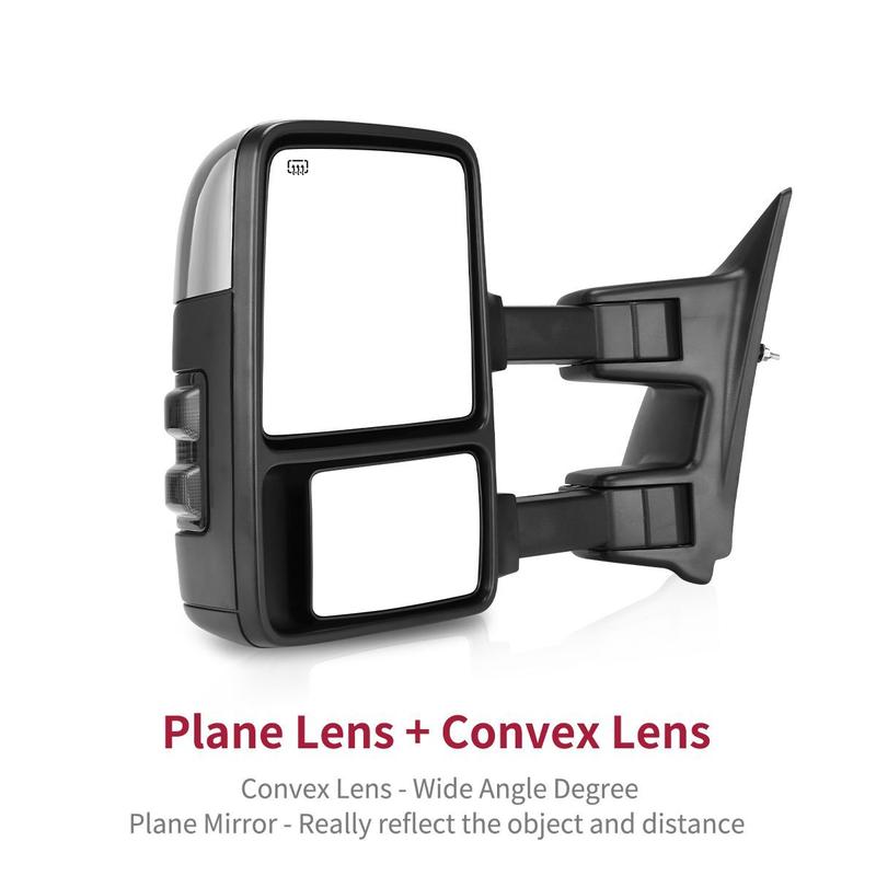YITAMOTOR Pair Heated Tow Mirrors are designed for 1999-2007 Ford F250, F350, F450 Super Duty vehicles. These mirrors enhance visibility during towing operations. They feature turn signals for added safety. Perfect for those who need reliable towing equipment.