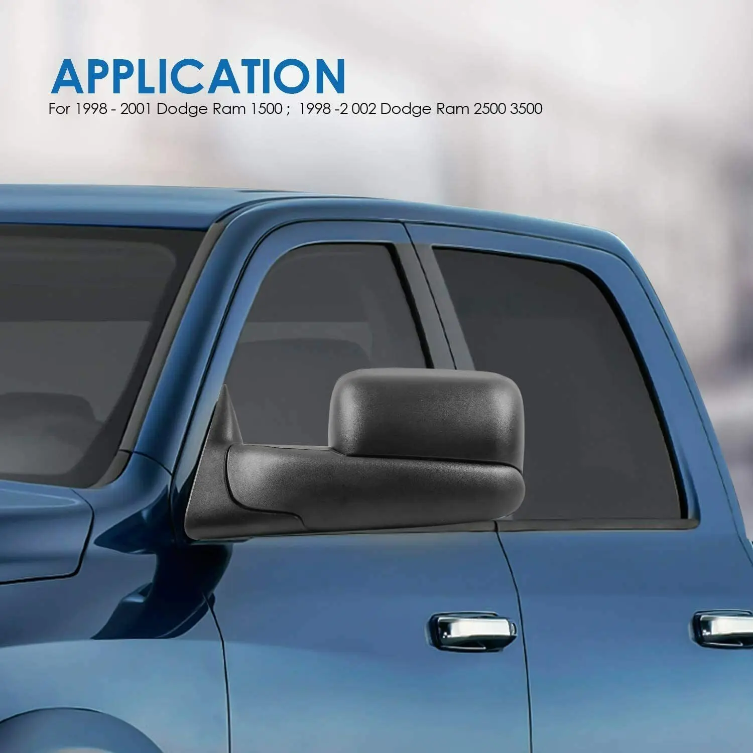 Compatible with 1998-2001 Dodge Ram 1500, 1998-2002 Dodge Ram 2500/3500, Manual Folding, Power Heated, Manual Flipped Down