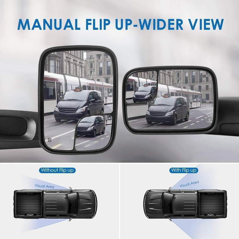 Enhance safety and convenience when you are towing a trailer load or camper with MOSTPLUS Towing Mirrors. Offering a wider view than standard side mirrors, these mirrors eliminate blind spots. With a direct bolt-on installation, they replace factory mirrors seamlessly. The extendable design ensures a perfect, preferred view for any towing situation. Reinforced with upgraded brackets, they prevent vibration and shaking, ensuring a steady reflection.
