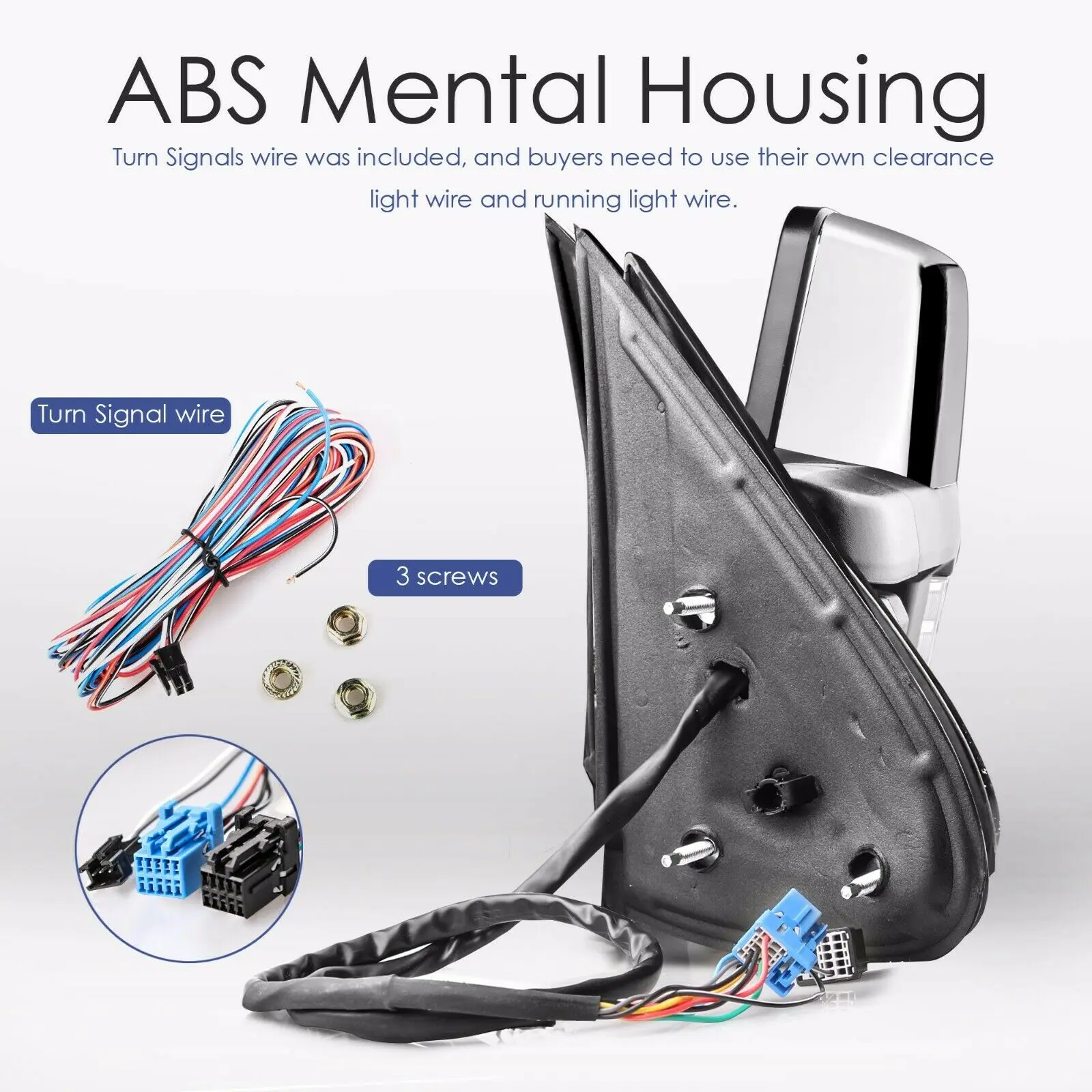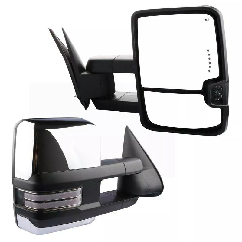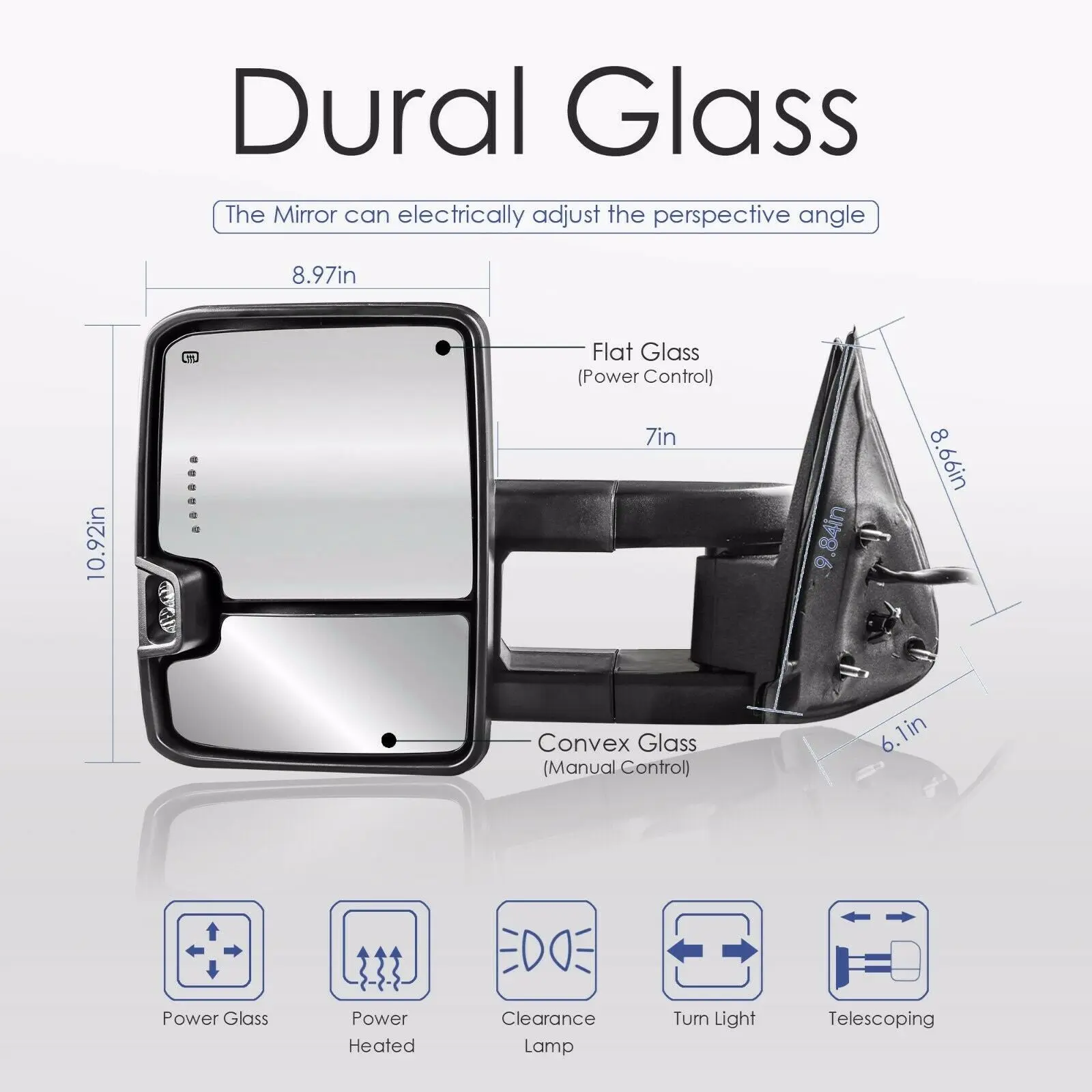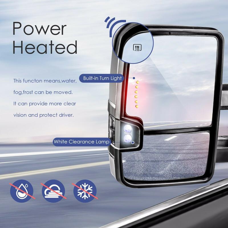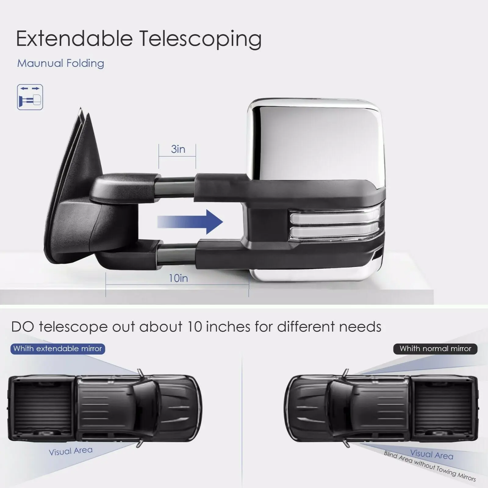 Compatible with 2003 2004 2005 2006 Chevrolet Silverado Tahoe Suburban /GMC Sierra Yukon Manual Folding, Power Heated, & Manual Extendable Towing Mirrors w/ LED Turn Signal Running Lights & Clearance Lights
