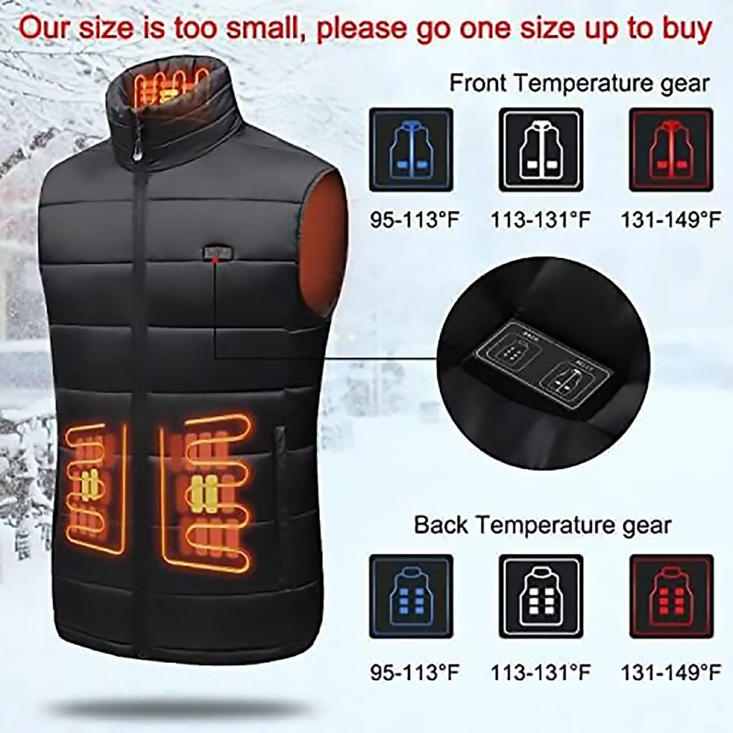 ·Safety temperature control, lasting warmth. Don't worry about the safety of wearing this heated vest, it have no radiation or leakage risk.
