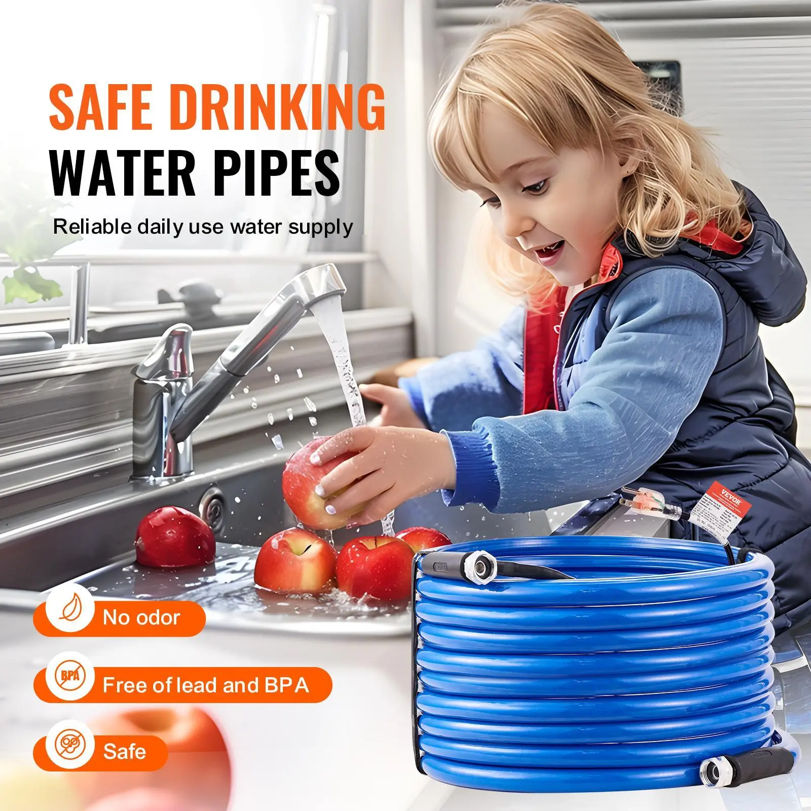 5. VEVOR 75ft Heated Water Hose for RV, Heated Drinking Water Hose Antifreeze to -45°F, Automatic Self-regulating, 5/8" I.D. with 3/4" GHT Adapter, Lead and BPA Free