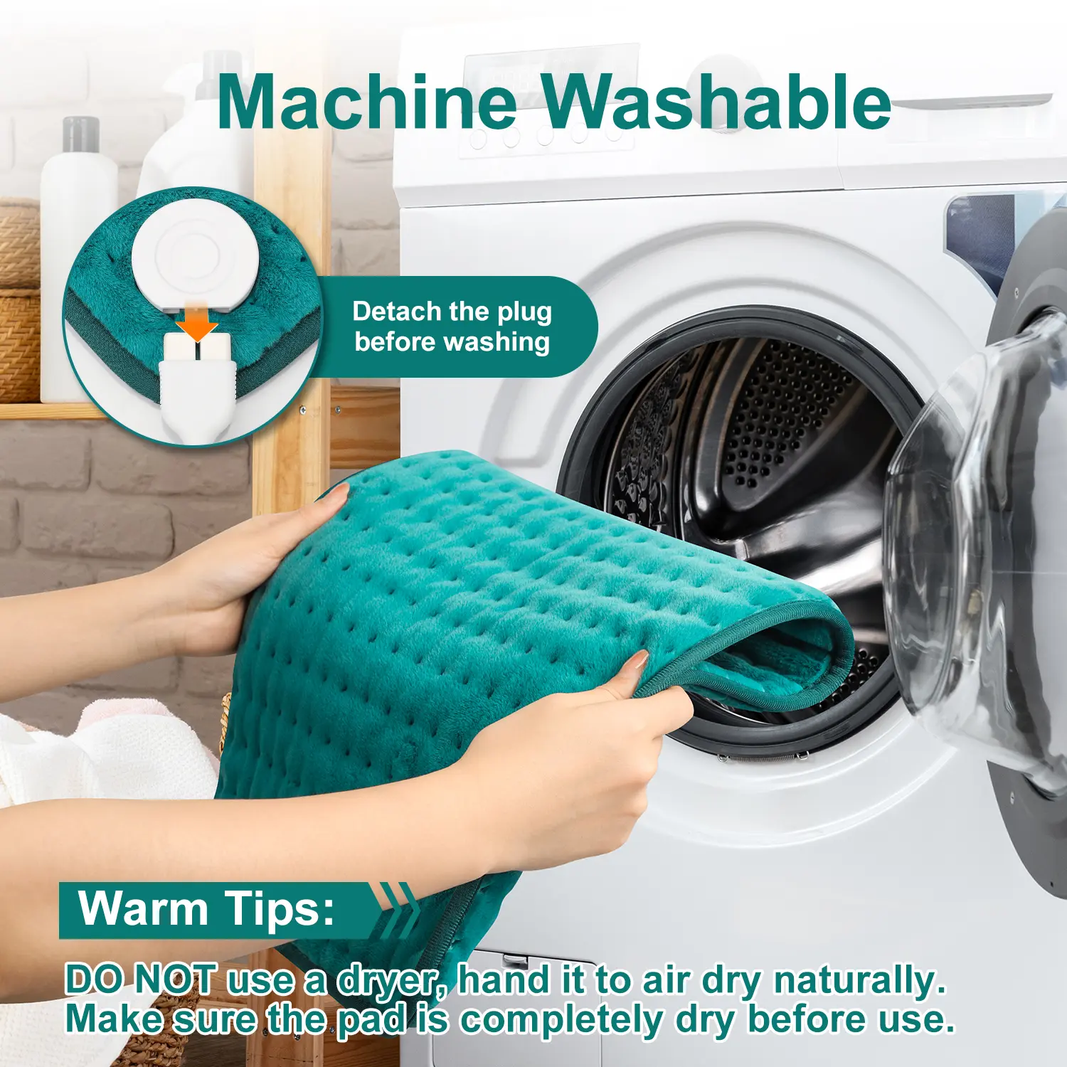 Easy-to-use: Machine washable exquisite plush allows you to wash it in the washing machine, freeing your hands. For moist heat, you just need to spray the surface with a mist of water before use. Also includes a 7 ft extra-long cord, so you can get relax everywhere!